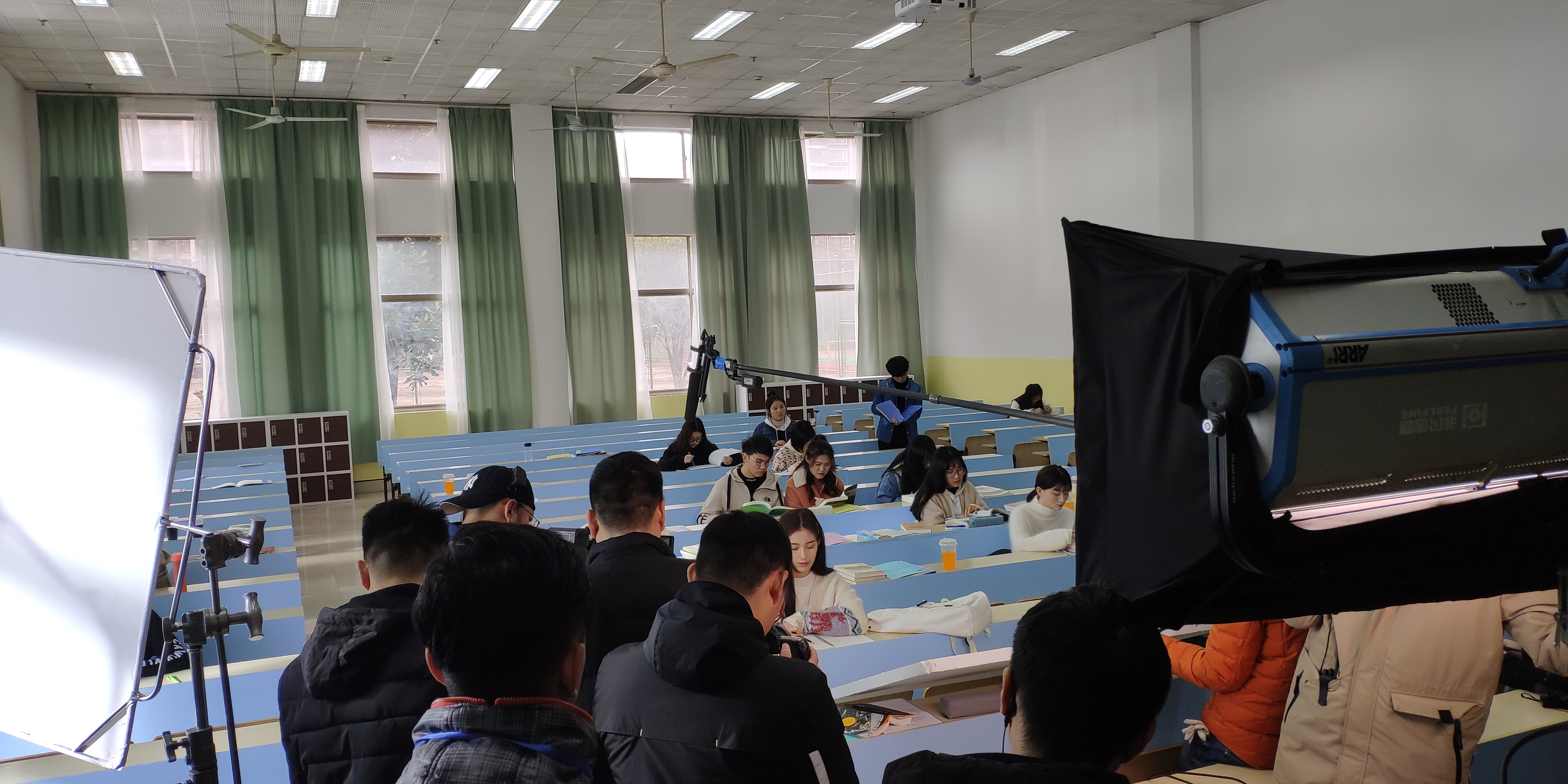 据影视编导教研室主任汤海滨介绍,此次剧组在我校图书馆、阶梯一教室等地进行了堪景,在我校有一周左右的拍摄工作。剧组在进驻拍摄时为我校影视编导、影视多媒体专业的学生提供了导演助理、制作助理、剧组外联以及群演四大类别的17个实践岗位,让同学们可以在自己的校园内直接参与剧组工作。这对于影视技术系的师生来说是产教融合新模式初体验、初探索。