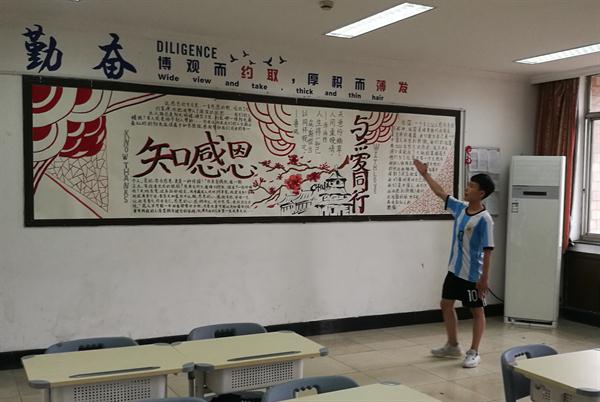 同时,在评比过程当中,最令人记忆深刻的就是班级中的小小讲解员,他们用生动的语言、优美的音乐和惊喜的表演把评委们带入到他们精心美化后的“殿堂”。17中国舞班的钱博洋同学,从踏入教室的第一步便开始娓娓道来,向评委们讲述“知感恩,与爱同行”浓厚的感恩情怀,介绍了每位同学把自己最亲切的感恩语言,宛如一片片树叶落在熠熠生辉的墙上,让每个人学会感恩身边父母、老师、同学等最亲的人。当评委们踏入18音乐班教室门口的那一刻,引人入胜的便是一声声《我和我的祖国》的钢琴声,在悦耳动听的琴声中欣赏同学们制作的弘扬“五四”运动精神,争做新时代有为青年的板报。跨入18越剧(3+4)班的教室,映入眼帘的便是一张张欢迎的笑脸,她们用朴实的言辞,亲切的小故事来介绍感恩亲切的身边人、感恩伟大的祖国。15中国舞班为评委们准备了一份精美的爱心小卡片,瞬间融化了老师们的心;17音乐班的小同学们,在即将结束之时唱起了《我的祖国》的小合唱,这样的表演更有一番滋味;15音乐班的同学们拿着一面面小红旗列队欢迎,洋溢着对祖国的热爱。在整个评比的过程中,无时无刻都能感受到同学们的那份挚爱与热情,青春与朝气。