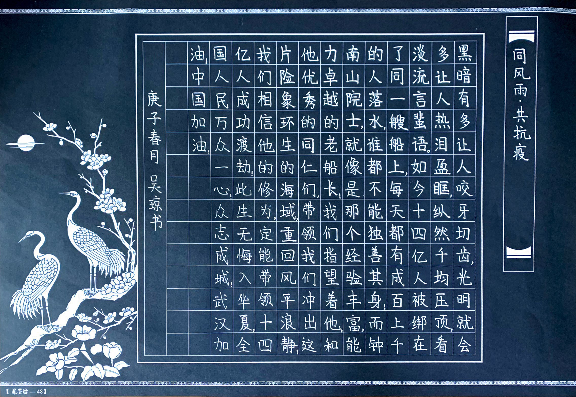 比赛面向全体音乐系在校学生开展,受到同学们热切关注,共收到投稿作品50余幅。作品内容以抗击新型冠状病毒肺炎疫情为主题,同学们用习总书记重要讲话金句、抗疫宣传标语和鼓舞人心、歌颂英雄人物的诗词、联、赋等内容进行创作,充分彰显了良好的书法技艺与对疫情防控的高度重视。经过两轮评审,分别评选出了一二三等奖。