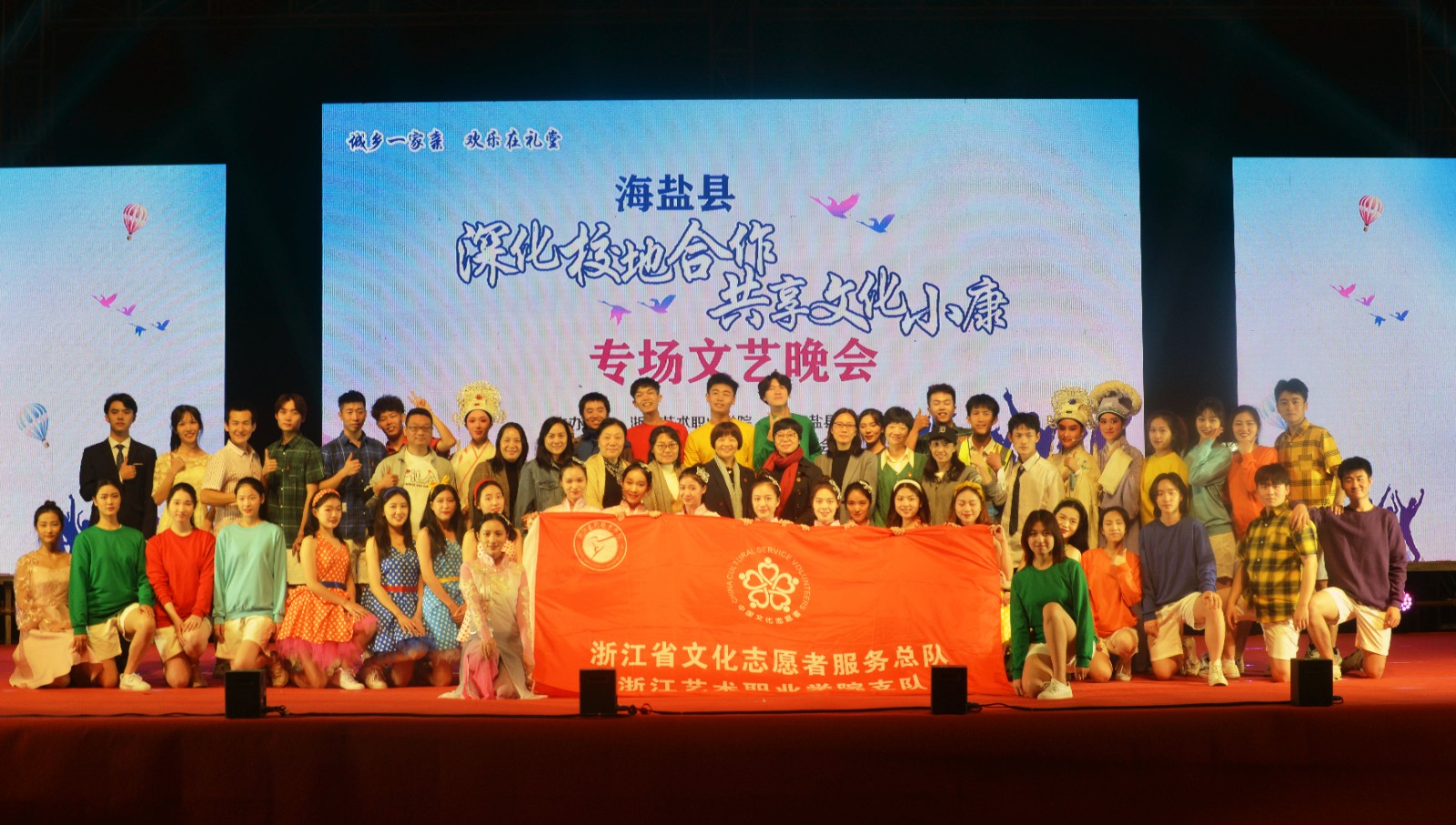 为助力2020年中国长三角·海盐南北湖文化旅游节,深化校地合作,发挥专业优势,共享文化小康。戏剧系师生党员、入党积极分子、优秀青年团员共同参与专场文艺演出,为当地居民送去文化盛宴。演出既有乡音民俗,也有人文情怀;既有讲述中国故事,也有展现抗疫精神。师生用丰富多彩的文艺节目将党的声音和关怀传递到了百姓家门口,极大丰富了群众文化生活,弘扬了优秀传统文化,增强了团结凝聚力。