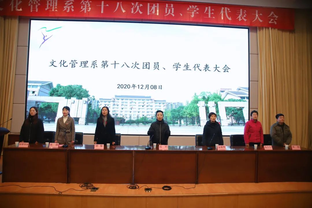 最后,文化管理系党总支书记金银琴宣读了大会选举产生的文化管理系第十八届团学委员会委员名单。随着铿锵激昂的团歌声,大会顺利闭幕。