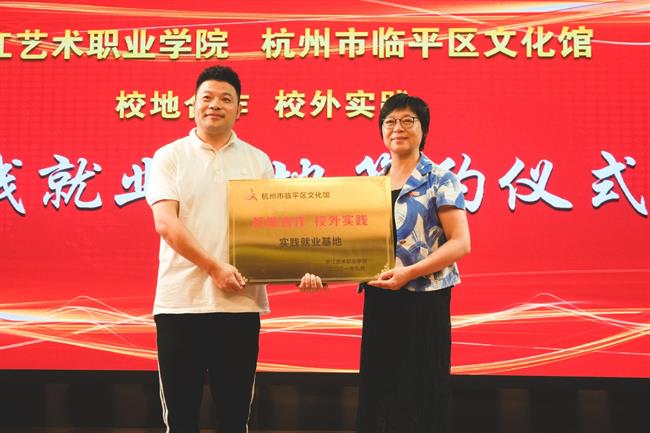 接下来,我校与临平区文化馆将携手共建校地文化,共同打造集实践教学、顶岗实习、产学互动、人才输送、文化服务五位一体的实践就业基地,为学生提供广阔的舞台,为公共文化服务做出贡献。