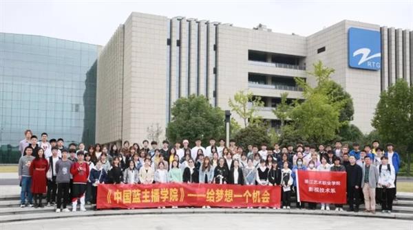 由陈楠江,郑可飚,余传友,邱亦雯相关专业教师带领21影视多媒体技术专业97名学生,到达位于萧山区浙江广播电视集团国际影视中心。并在集团工作人员的组织下进入国际影视中心。 依次参观了一楼阳光厅的600㎡演播厅、六楼互联网数据中心、以及三十楼的电商直播中心。学习了解了融媒体环境下影视制作播出的实际场景,国际影视中心网络分发和数据集成统计系统,并深入了解新媒体网络直播团队高效快捷的工作模式,直观感受到直播电商产业的发展现状。