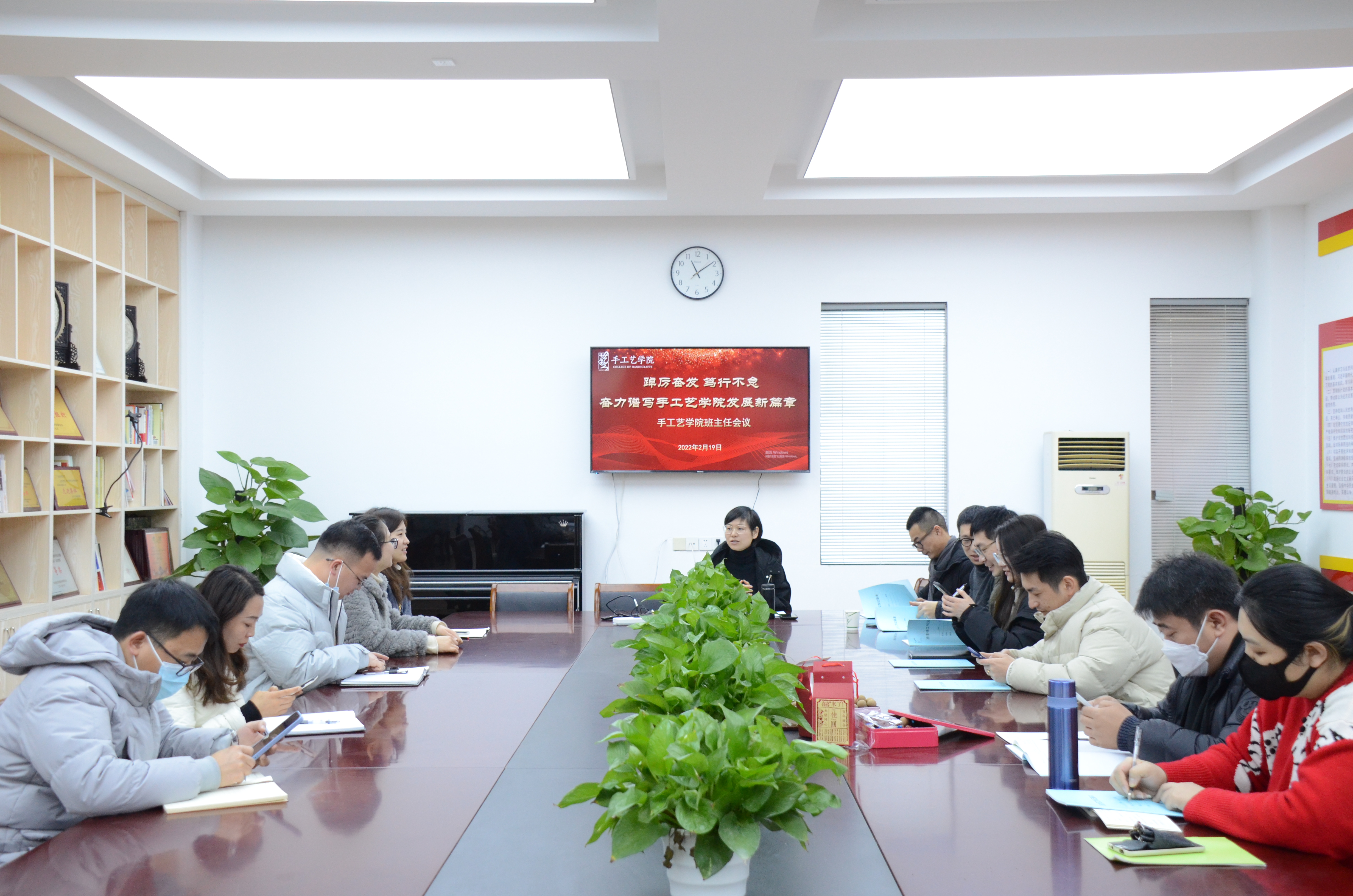 2月19日,手工艺学院全体教职工齐聚学院,分别召开全体教职工会议、教研室主任会议、班主任会议,紧锣密鼓地统筹部署新学期开学工作。手工艺全体教职工以生龙活虎的干劲,气吞万里如虎的精神,共同开启新学期新篇章。