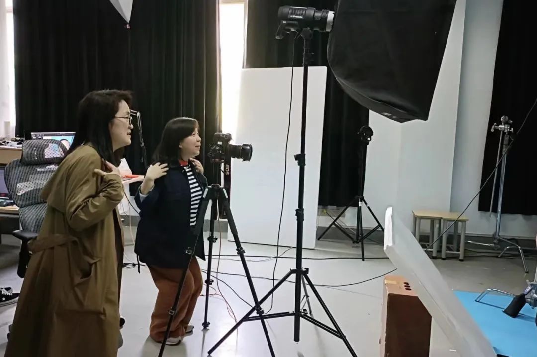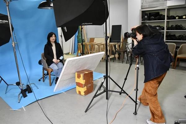 拍摄现场,老师们容光焕发,根据证件照的拍摄要求与照片用途调整外形外貌,坐在聚光灯前,端正坐姿,面带微笑,呈现出最佳的状态。本次活动由摄影摄像教研室支持,教研室主任王欢作为摄影服务者,秉着服务浙艺师生的初心,拍摄过程中与老师们时时交流,努力调整老师们的拍摄状态,细致地进行姿态的调整、衣着的整理和表情的管理,捕获住尽善尽美的瞬间,老师们按序对拍摄照片进行挑选,拍摄氛围轻松愉悦,欢声笑语不断。