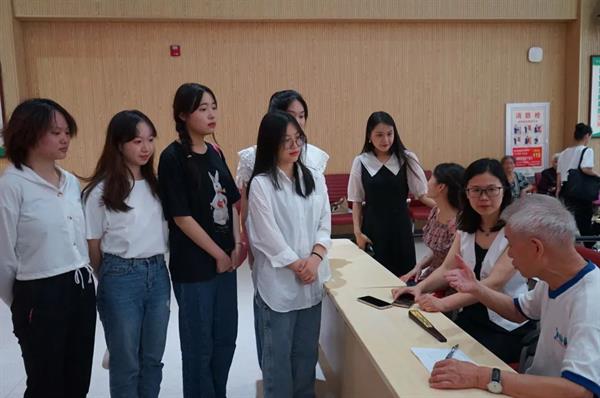 步入养老院的文化礼堂,观众席已经落座了好几位老人,师生们热情地与老人们打招呼,老人们也和蔼亲切地与学生们交谈。演出在老人们雷动的掌声中拉开帷幕。