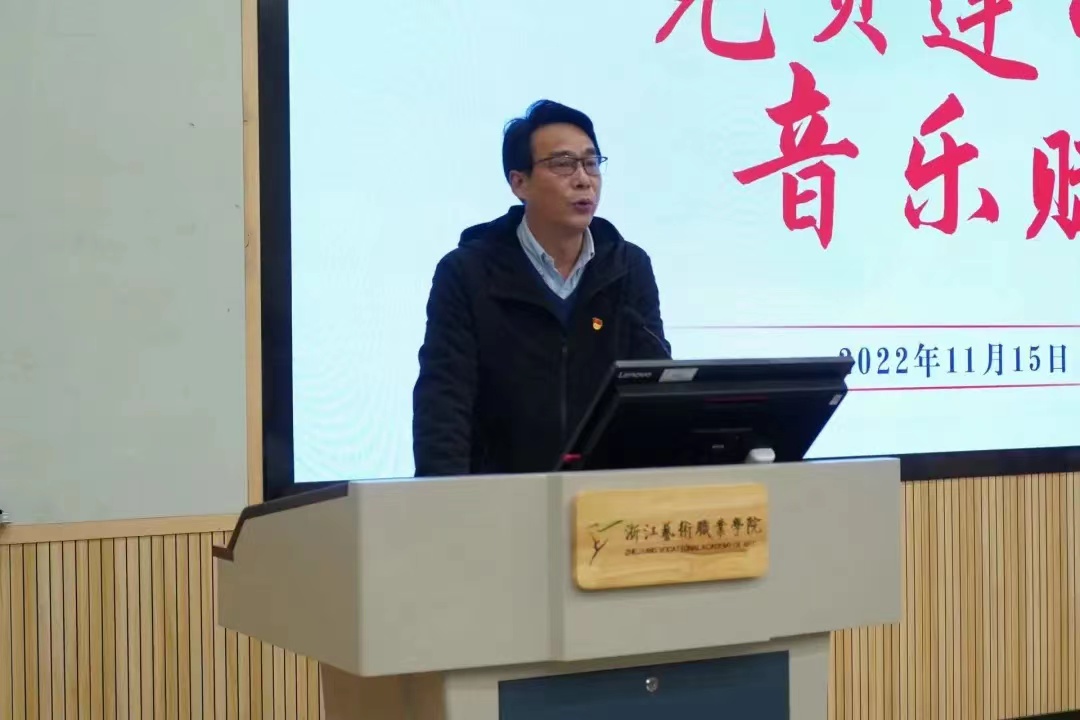 音乐学院院长、党总支书记吴樟华致辞。他表示,在深入学习宣传贯彻党的二十大精神之际开启党员联系寝室结对共建活动,将更好落实“六学六进六争先”学习实践活动和省委“红色根脉强基工程”,着力推进党建统领网格智治,打造“党员连心 音乐赋美”的音乐学院学生寝室党建网格化建设新格局。