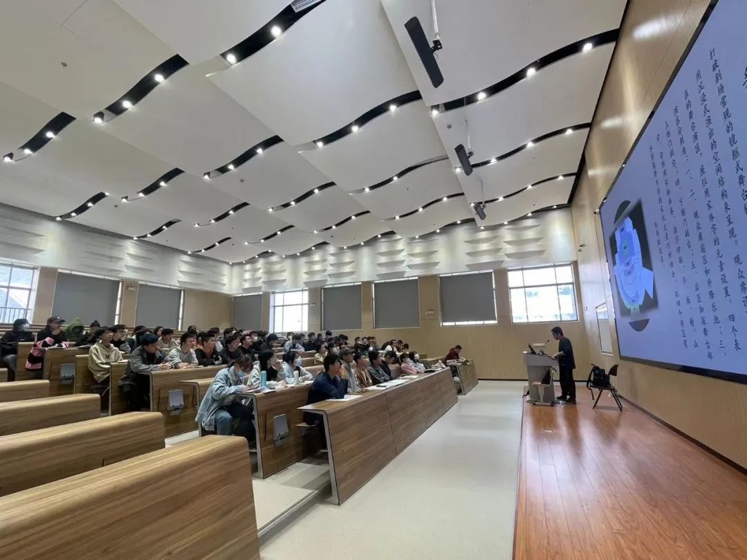 黄德聪从阐释多声道扩声声音设计的概念出发,为同学们介绍了设计项目和设计场地的现状,厘清了声音设计的思路,详细讲解了声场设计、音箱分布及整个系统的设计方式。本次演出以“宋韵”“诗路”为核心主题,通过三个篇章,六大精神实质,多种艺术表达,传递爱国、创新、包容的诗词文化,风雅精致的古典审美。