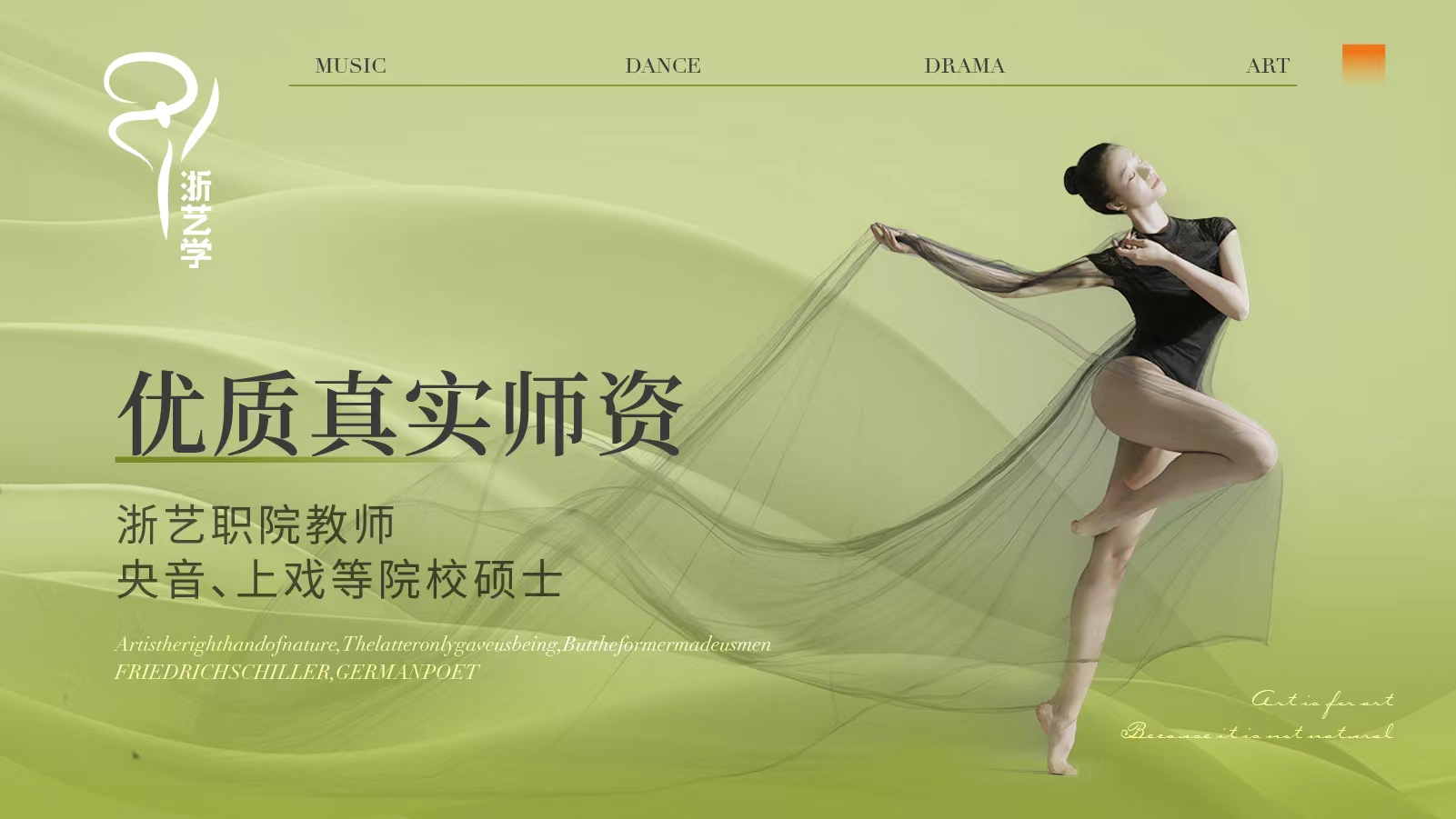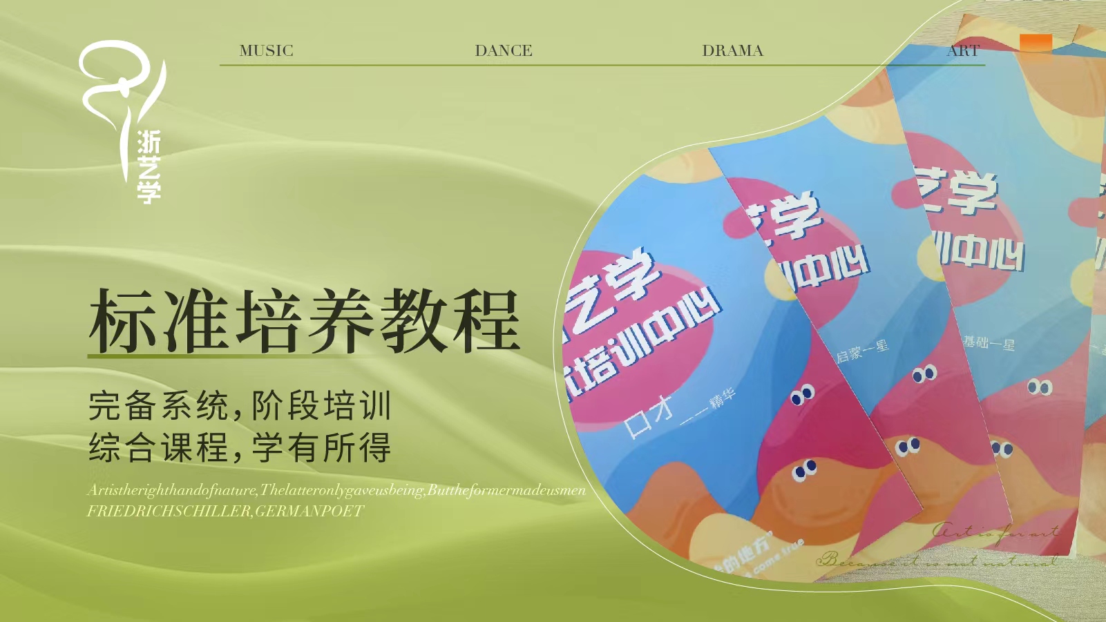 浙艺学艺术培训中心依托股东方浙江艺术职业学院的专业教学质量管理和浙勤集团企业运营管理等方面的经验,强强联合,以培育真善美的复合型艺术人才为目标,现已开设音乐(声乐、器乐、奥尔夫音乐、音乐素养等)、舞蹈(中国舞、街舞)、口才、戏剧、美术、书法、陶艺等青少年艺术素养课程,并将持续深耕文化艺术培训的发展创新,积极培育新一代浙江文艺新星。