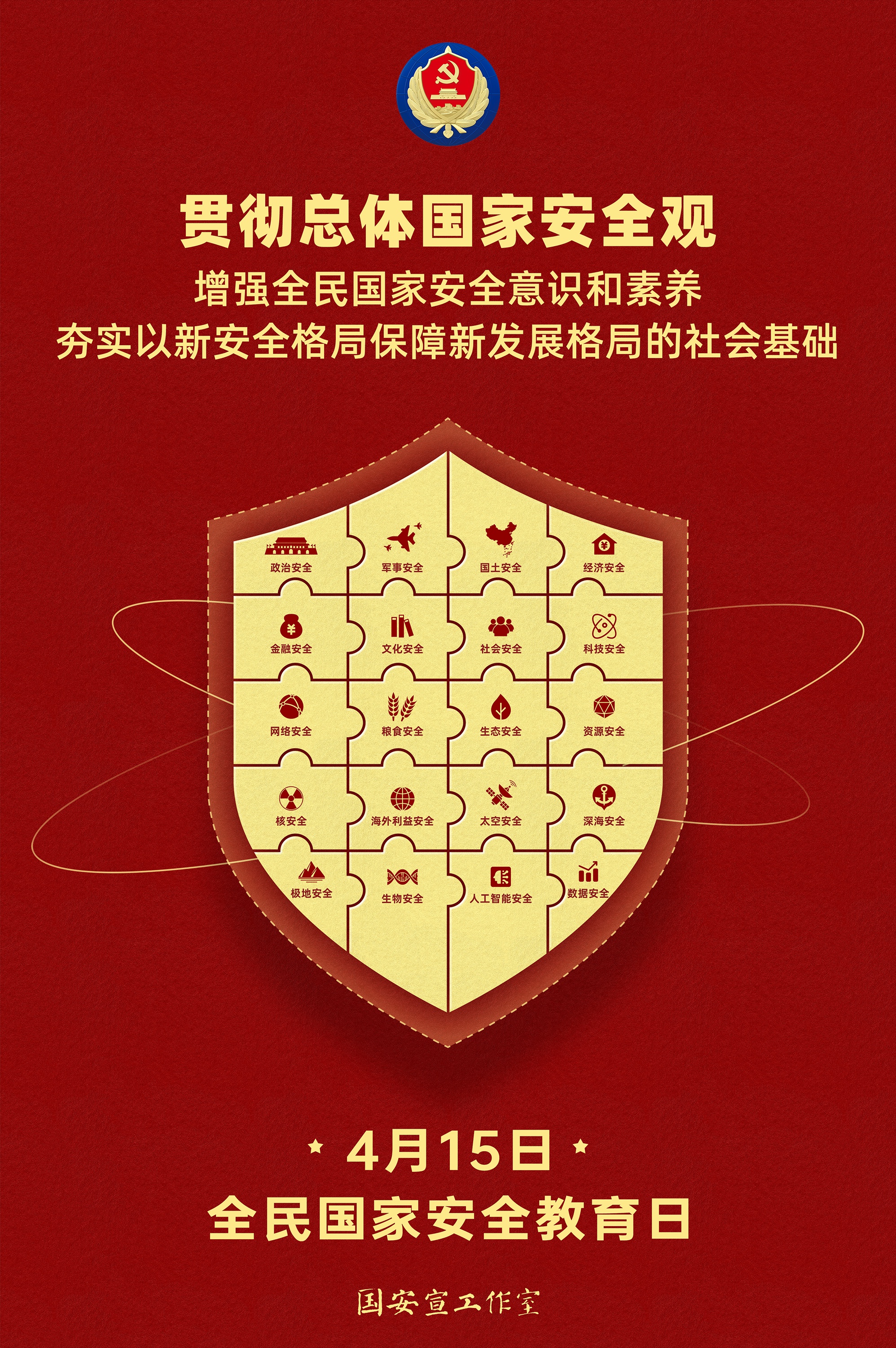 今年国家安全教育日的活动主题是“贯彻总体国家安全观,增强全民国家安全意识和素养,夯实以新安全格局保障新发展格局的社会基础。”