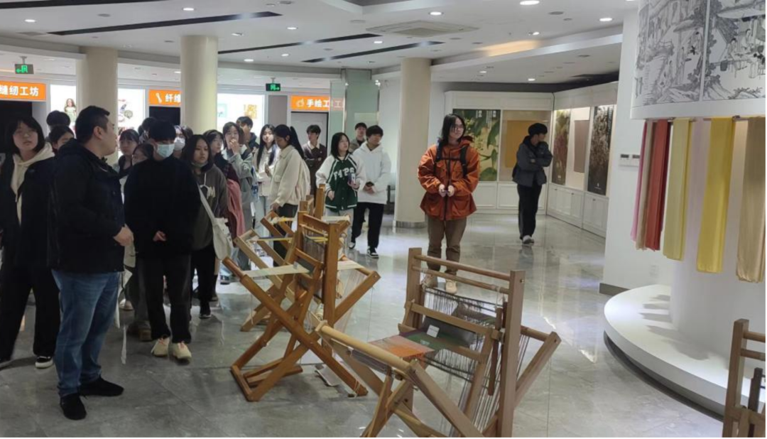 中国丝绸博物馆是以中国丝绸为核心,集纺织服装文化遗产收藏、保护、研究、展示、传承和创新为一体的国家一级博物馆。其儿童馆是2021年由我院展示艺术设计专业师生设计落地完成。本次参观由馆方安排讲解员为我校师生进行详细解说。同时,包君伟向同学们介绍了儿童馆的空间设计及制作工艺。