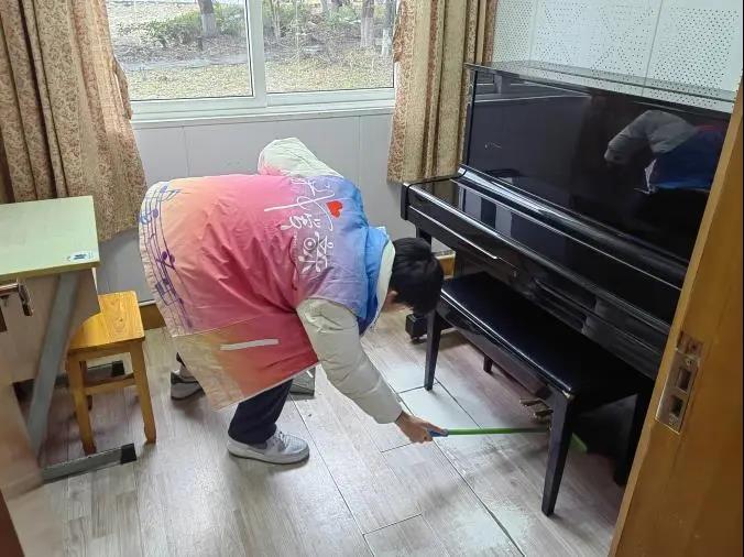 科学研究表明,体力劳动如同运动一样,能使人的血液循环、新陈代谢速度加快,有助于疏解焦虑情绪、维持良好心理状态。本次“以劳健心、育见成长”大扫除围绕““校园-教室-琴房-寝室”四处开展全方位的义务劳动实践,引导五年一贯、纯中专及大专各学制学生在长期学习、生活的场所进行物品清理与场地打扫。通过这一劳动教育疏解和释放学生的不良心理情绪,在劳动教育中逐渐完善和健全学生心智人格,增进大学生对劳动的认知和认同,引导其杜绝“躺平”“佛系”“摆烂”等消极心态。