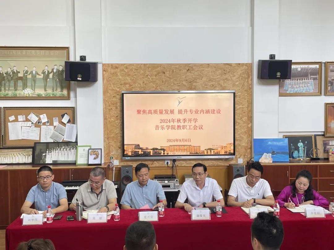 9月6日上午,2024年秋季学期音乐学院教职工会议在合唱教室举行,校党委副书记、校长施俊天,校党委副书记夏开堂莅临指导,音乐学院党总支书记陈毅主持会议。