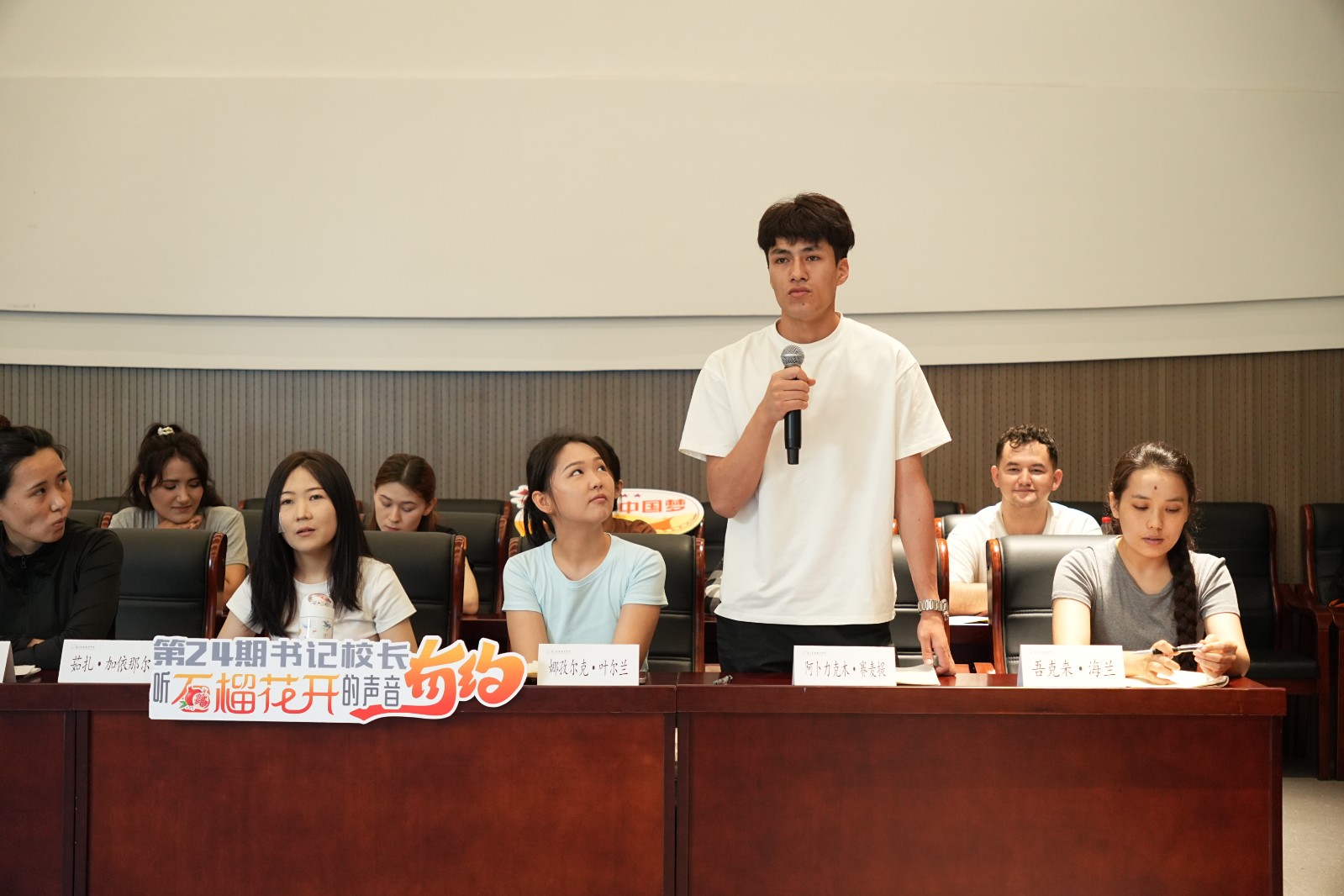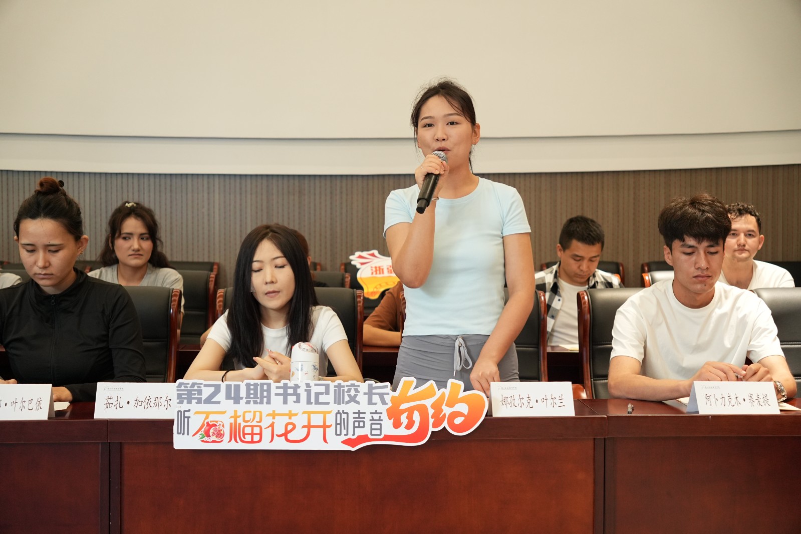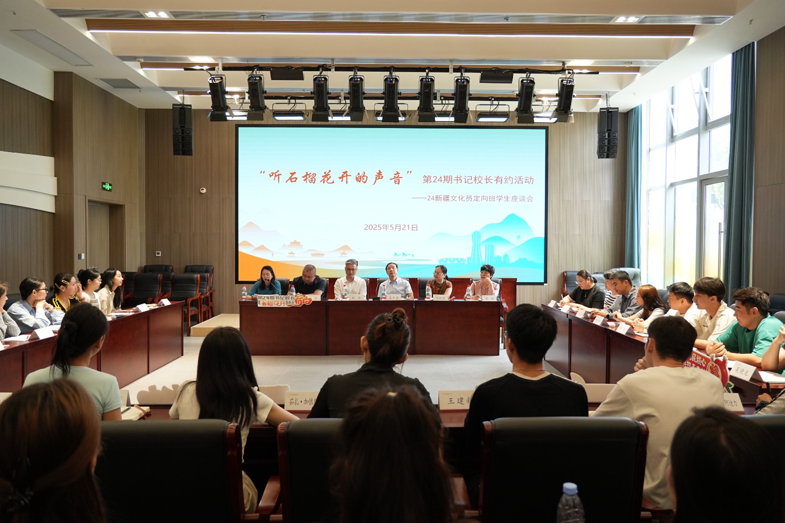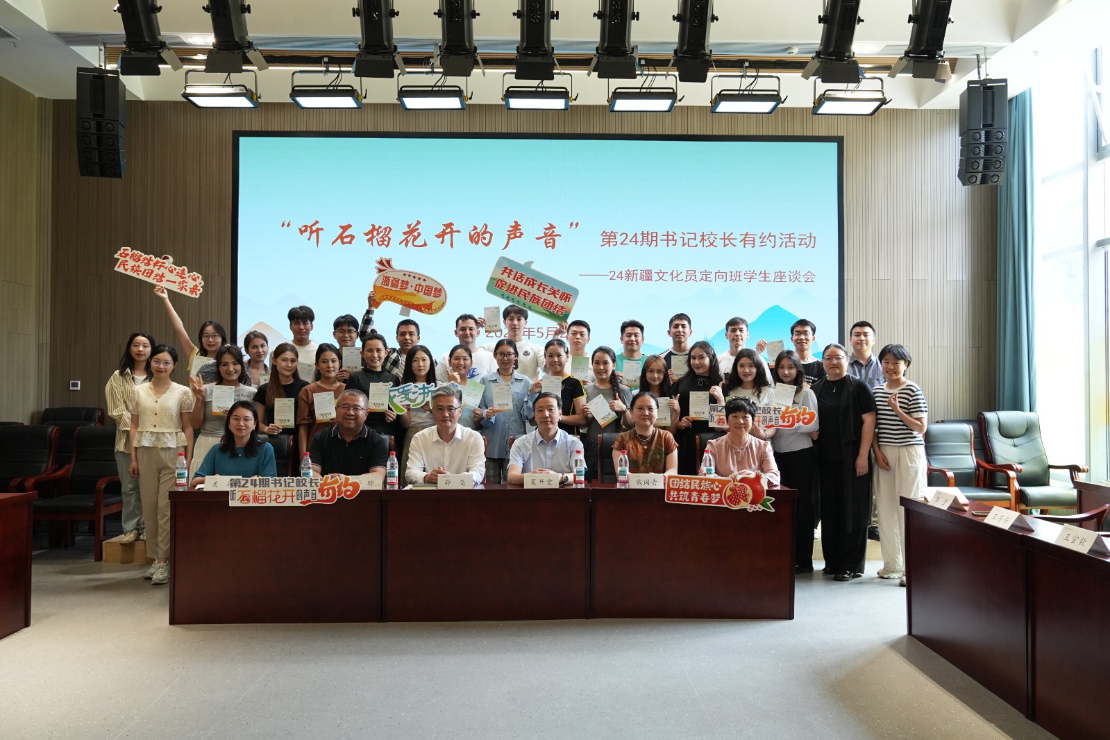 在文化润疆战略持续推进,浙疆两地情谊日益深厚的背景下,近日,一场满载关怀与希望的对话在我校报告厅展开。“听石榴花开的声音”第24期书记校长有约活动走进“我爱浙疆・基层文化员”班,校党委书记薛亮、党委副书记夏开堂与24级“我爱浙疆・基层文化员”全体同学围坐一堂,共话成长点滴,擘画未来蓝图。