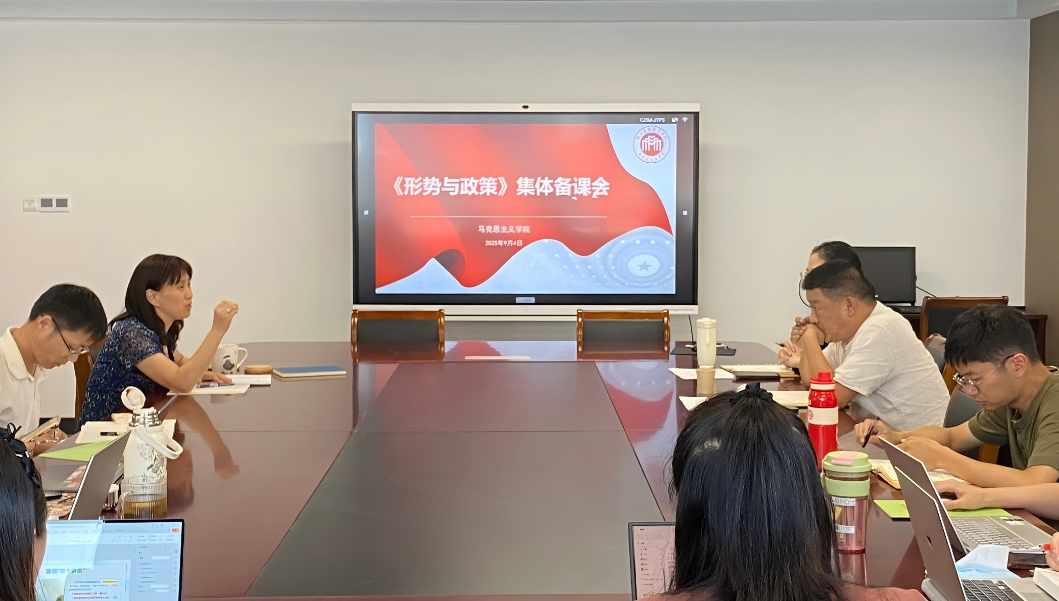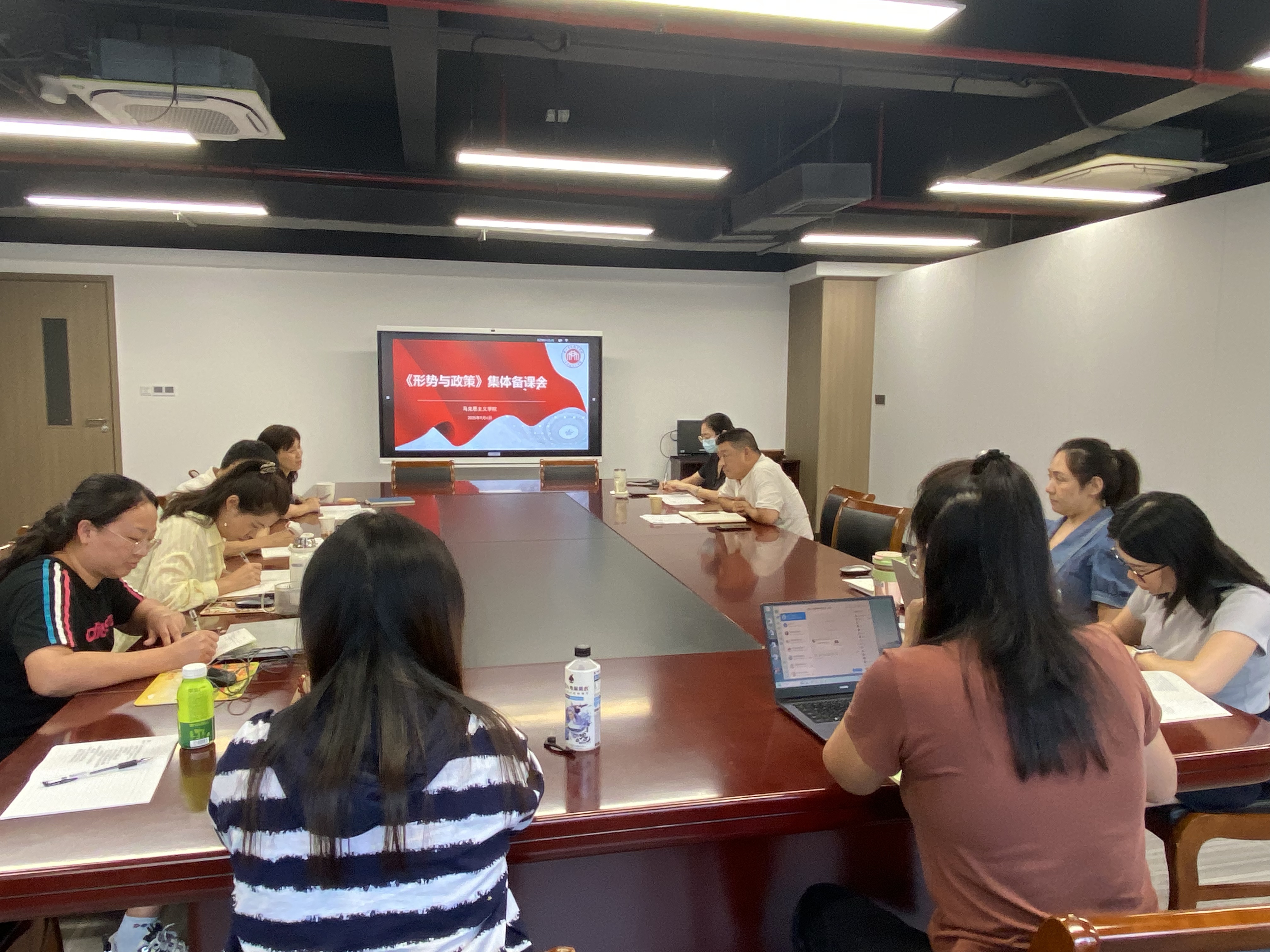 10位任课教师依次围绕各自专题进行分享:从宗教政策到艺术乡建,从台海局势到科技革命,老师们用数据、短视频、问卷报告等形式丰富的素材,集中展示了假期里扎实的备课,现场干货频现、亮点纷呈。