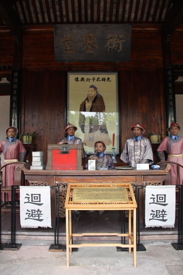 随着导演讲解,我们走进这名闻遐尔的清风园。这里陈设丰富,类型多样,通过文字、图片、雕塑、壁画、实物模型、电子书和多媒体演示等多种表现形式布展,有慈孝文化与清廉文化、慈溪清官故事、房琯塑像和清清堂,鉴壁启示、贪奢为戒激浊厅、人间正气扬清厅和警钟长鸣反思厅等八个单元陈设,既歌颂清官,也鞭挞贪官,传统清官廉吏的群体形象和历朝贪官污吏的耻辱言行对比鲜明,分别呈现,可谓激浊扬清,弘扬清廉之气,观之品之,意味深长。