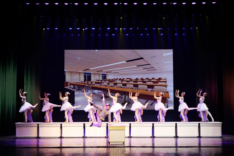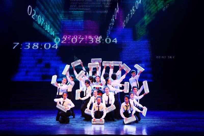 当晚一台以“青春印迹”为主题的颁奖文艺晚会激情上演。一曲由浙江艺术职业学院献演的民乐合奏《夏日骄阳》拉开晚会序幕,带领大家走进音乐殿堂,跌宕起伏的旋律,动人的合奏,扣人心弦,气势磅礴。浙江大学和温州大学演出的舞蹈《青春节拍》《那个年代的我们》呈现了那个时代大学生的逐梦之路,令人回忆无穷。浙艺职院表演的越剧《金玉良缘》以圆润的唱腔、传神的表情演绎了一段绝世佳缘。晚会令人深刻的是浙江特殊教育职业学院一位盲人学生演唱的《你是我的眼》,深情的演唱透露出坚强的生活信念,传达出一种正能量,展现了人间大爱。丽水学院的舞蹈《春山竹谣》,将竹子做的跷跷板搬上了舞台,黄陪绿的服饰搭配,纯天然的背景,充分展现了丽水的自然风光。浙江传媒学院、浙江音乐学院(筹)、杭州师范大学、浙江师范大学等高校学生也进行了精彩表演。由浙艺职学院表演的舞蹈《凳之龙》,编排新颖独特,富有创意,气场十足,二十多位热血男儿在板凳上展现了高难度的舞蹈技巧,铁骨铮铮,演绎了一条腾飞之龙,预示着厚积薄发的豪情壮志,获得现场阵阵掌声。最后,一曲由浙艺职院音乐系女生王璟演唱的《红旗颂》,以感人肺腑的音乐魅力,为晚会画上了圆满的句号,让观众久久回味其中。这台晚会由浙艺职院舞蹈系教师包峥剡担任导演,节目安排紧凑,每个节目都富有震撼力,舞台调度浑然一体,赢得观众热烈好评。