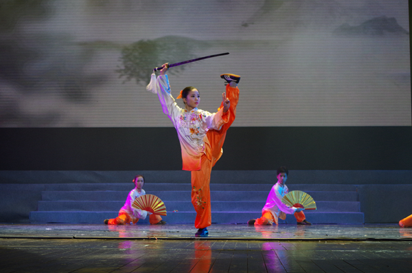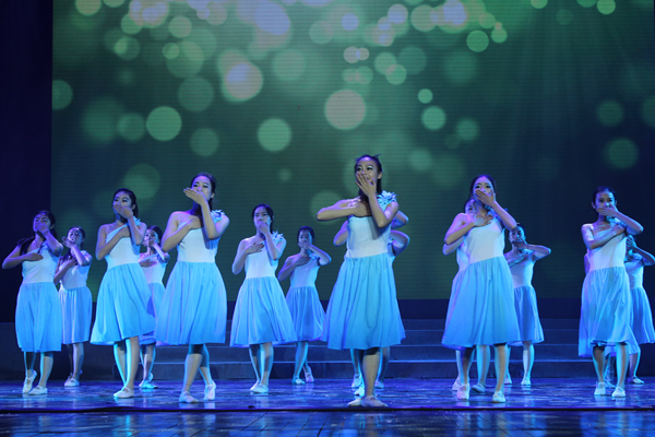 接着,盛大的文艺演出倾情上演。由浙江商业职业技术学院的同学们带来的《LALALA》正式拉开演出帷幕,他们身穿一身的运动装,在舞台上谱写着青春舞曲;浙江体育职业技术学院带来的武术表演《行云流水》,动作整齐,苍劲有力,一招一式体现的是中华传统文化的动之美;浙江医学高等专科学校的《因为是医生》,“白衣天使”教会了大家在遇到突发事故时如何采取正确的急救措施,阐述了他们所担负的使命;浙江科技职业学院表演了极具未来感和科技感的《炫酷电光舞》,科技与艺术相结合,给观众以焕然一新的视觉冲击;浙江旅游职业学院的《再见茉莉花》,将传统的茉莉花与现代的街舞相结合,油纸伞、旗袍、RAP、街舞,古典与街头的融合迸发出一种独特的美;浙江警察学院的同学们将平日的训练生活搬上舞台,并与之将青春和梦想相融合,矫健的步伐,铿锵的口号,向大家展示了印象深刻的《快乐警营》;浙江省教育发展中心滨江后勤集团的员工们以自己独特的表达方式展现了各自对艺术的追求和支持,他们是滨江高教园区坚实的后备力量;由东道主浙江艺术职业学院带来的群舞《鱼儿》和独唱《美丽家园》作为压轴节目登场,惟妙惟肖的舞姿,甜美的歌声,专业的水准,将晚会气氛推向高潮。