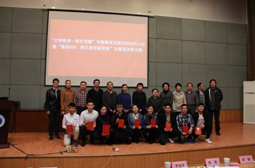 现场还举行了“喜迎G20,展示浙艺新形象”文明修身主题演讲赛决赛。来自各系的10名选手用自己的真情实感阐释了“文明修身”的意义。经过主题演讲和即兴演讲两轮激烈角逐,戏剧系薛静瑶同学获一等奖。