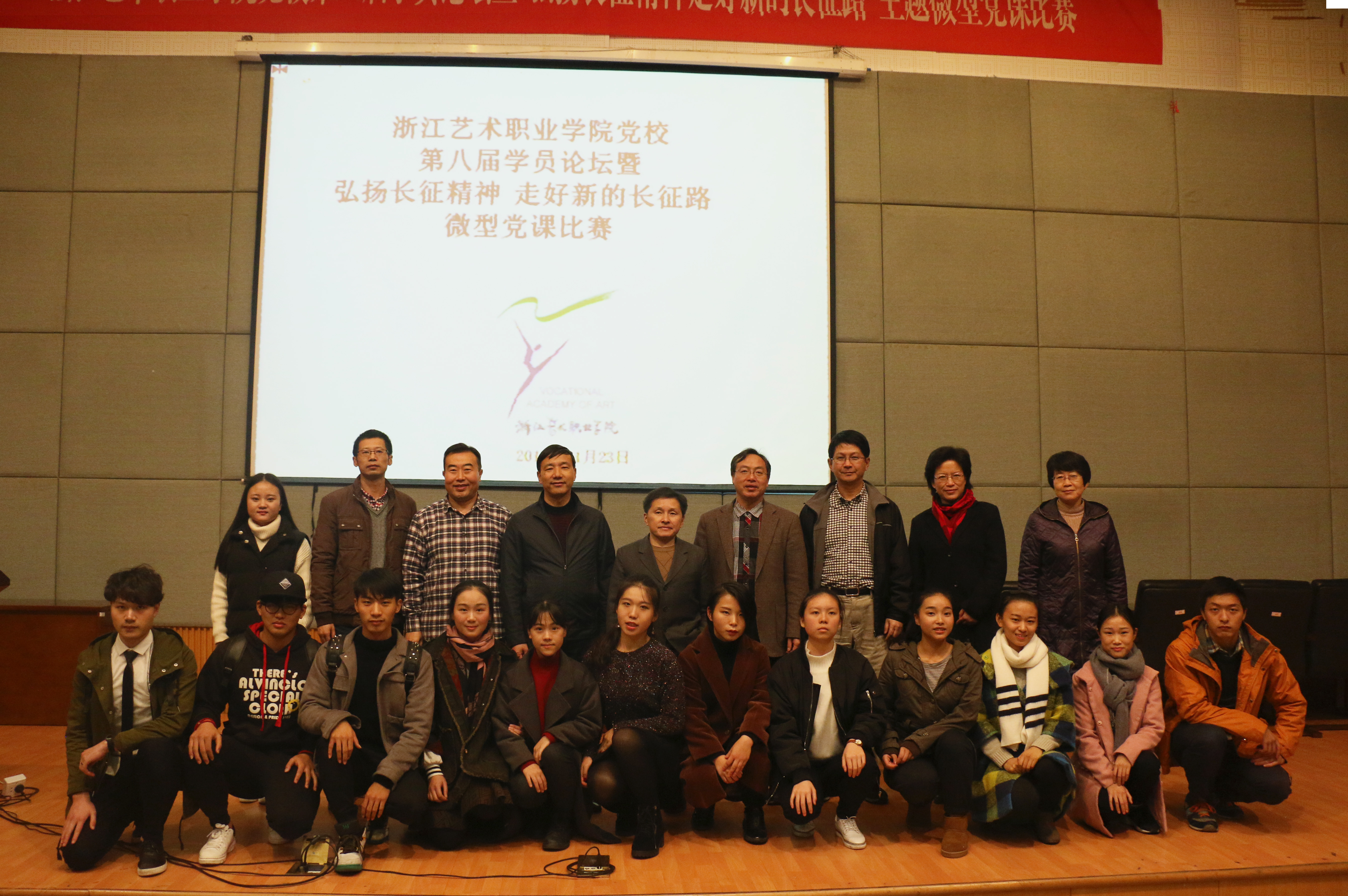 11月23日晚,浙江艺术职业学院党校第八届学员论坛暨“弘扬长征精神,走好新的长征路”主题微型党课比赛举行,来自全院6系的12名党校第28期培训班学生进行角逐,阐释长征精神,回忆红军故事,紧扣时代发展,抒发走好新的长征路的信念和情怀。