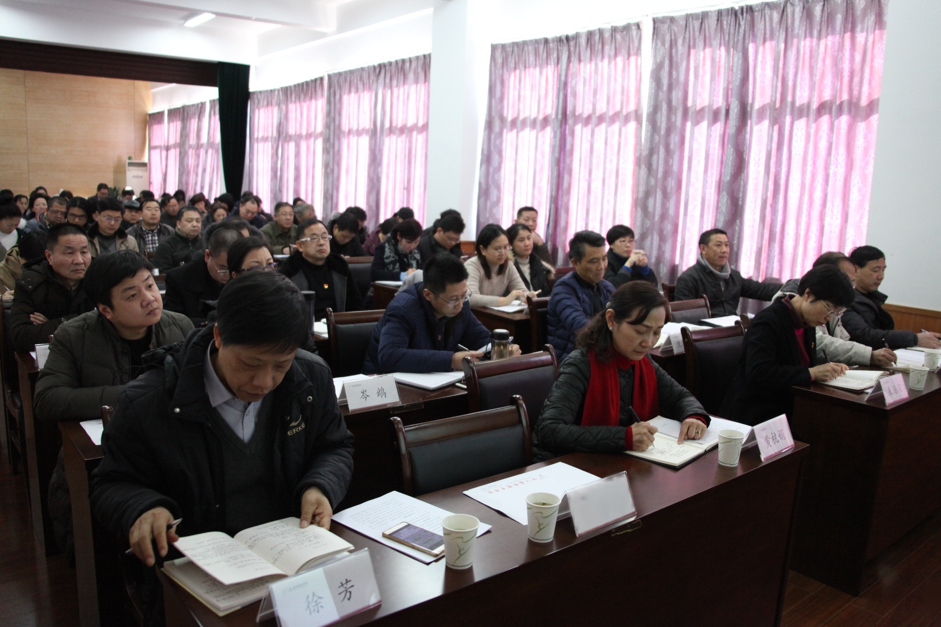 根据我校推进巡视整改工作整体部署,为深入贯彻中共中央办公厅、国务院办公厅出台的《领导干部报告个人有关事项规定》和《领导干部个人有关事项报告查核结果处理办法》“两项法规”精神,做好2018年领导干部个人有关事项报告工作,1月10日下午,我校召开领导干部报告个人有关事项专题培训会,邀请省委组织部干部监督室副主任王兆山专题授课,校领导班子成员、全体科以上干部参加了培训。