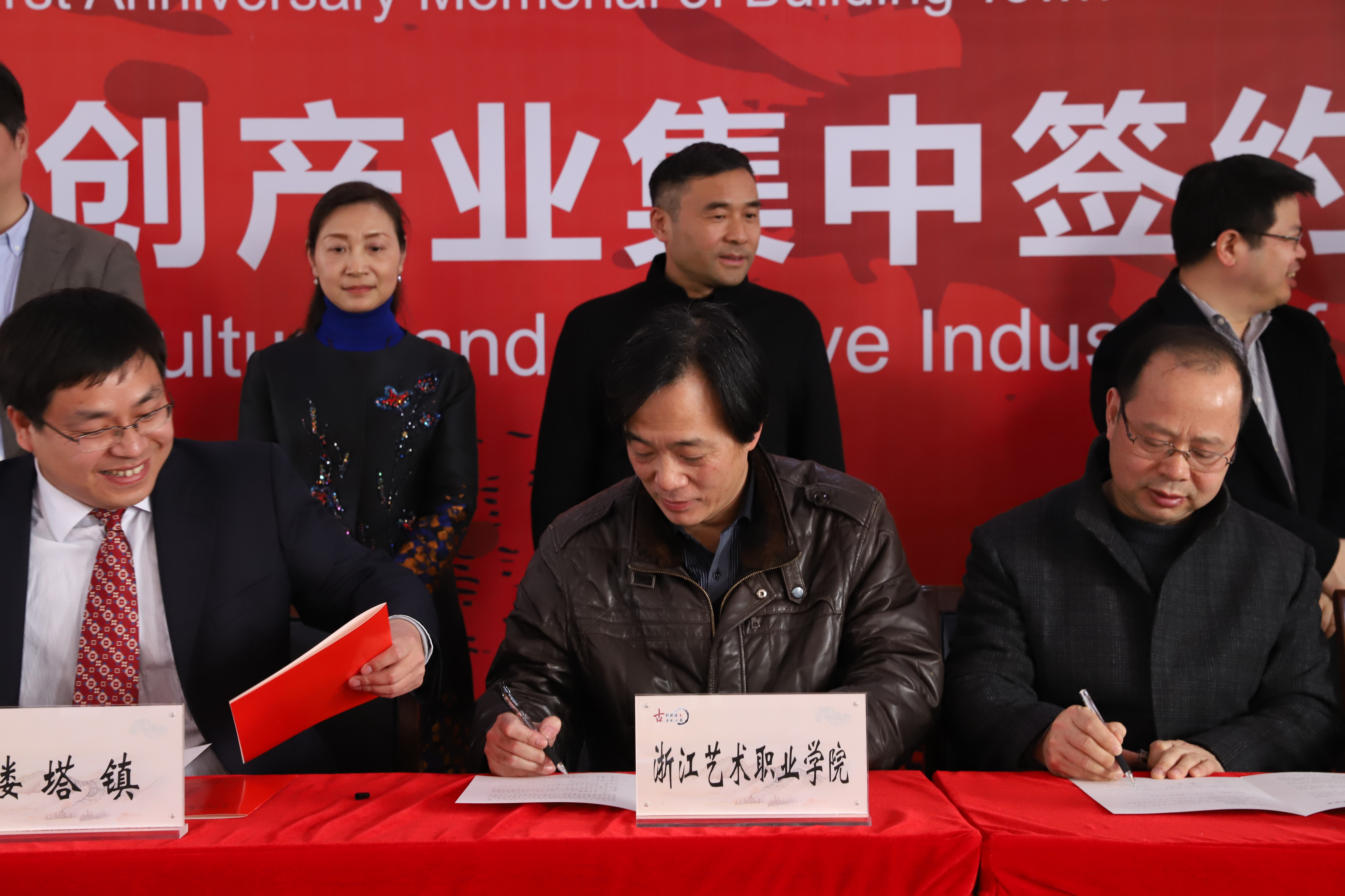 3月9日,楼塔镇建镇1121周年暨文创产业集中签约仪式举行,出席本次仪式的领导有萧山区委常委、宣传部长赵文虎、萧山区人大常委会副主任高卫国、萧山区人民政府副区长杨晓峰等,浙江艺术职业学院院长黄杭娟、副院长沈恒等一行前往萧山区楼塔镇人民政府参加仪式。