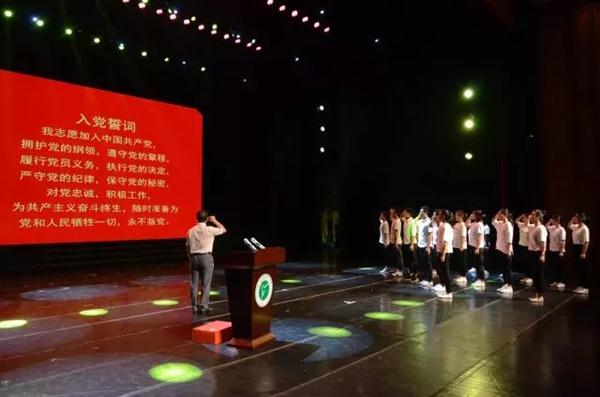 大会上,新发展的19名学生党员面向党旗举行入党宣誓仪式,用洪亮的声音立下为共产主义、为党和国家事业奋斗终身的庄严承诺。