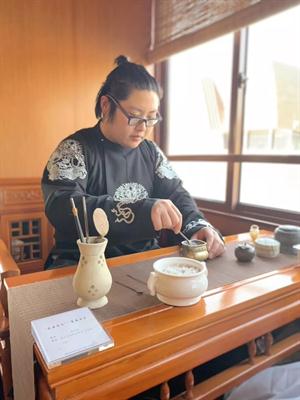 游船上,浙艺文化管理系学子表演水印和香道