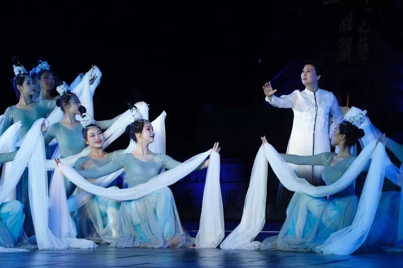 现场,来自浙江小百花的新一代越剧代表人物蔡浙飞、章益清、魏春芳及大批优秀青年演员,和演出总导演、文化部优秀专家、浙艺副院长支涛、浙艺资深越剧教师周伟君携学生,共同演出了一台精彩纷呈的诗画越剧。其中,代表吴越文化的《范蠡与西施》和原创湘湖诗路作品《贺知章与李白》尤为引人关注。