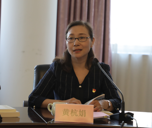 黄杭娟领学了《坚定不移推进全面从严治党》《领导干部要践行“三严三实”》等篇目,并以《推动我校全面从严治党向纵深发展》为题作中心发言。黄杭娟表示,习近平总书记多次强调要坚定不移推进全面从严治党,体现了他以“我将无我、不负人民”赤子情怀和以人民为中心的发展思想,体现了他居安思危、勇于变革的强烈的责任担当,体现了他永不僵化、不断创新的可贵理论品质,体现了他勇于自我革命、从严管党治党的鲜明政治品格。