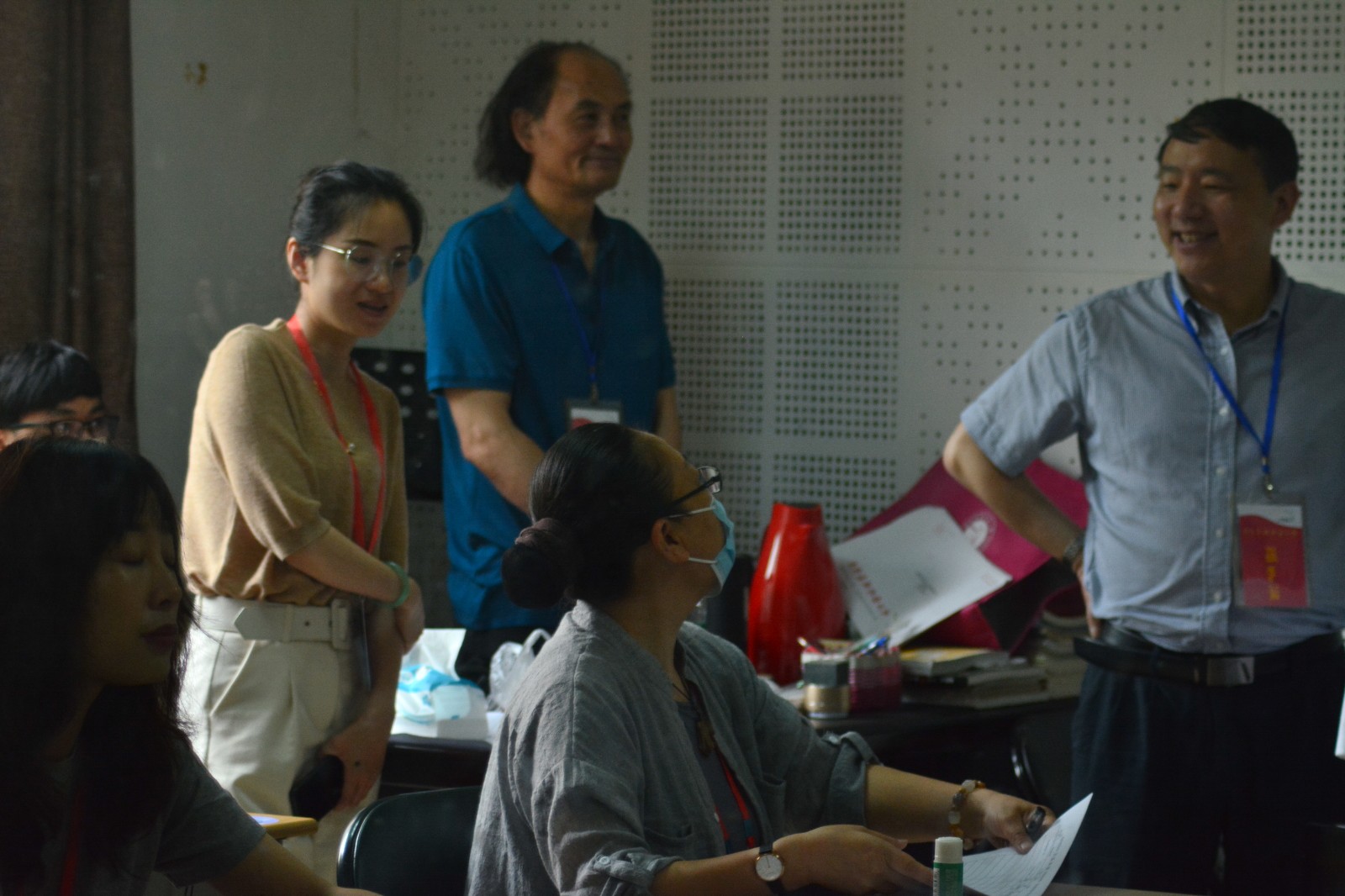清晨,5号楼内,考官、考务人员、志愿者早早就绪等待考生进场。候考室内,志愿者宣讲了考试流程,贴心地给候考同学分发小零食,缓解紧张情绪。考生们抓紧时间练习舞蹈,朗诵台词,开嗓,耐心等待考试。音乐剧专业需要有一定艺术专业基础,专业面试从声乐、形体、台词、视唱练耳四个方面综合考量考生的专业素质,考官由浙艺和浙传的专业老师共同组成。