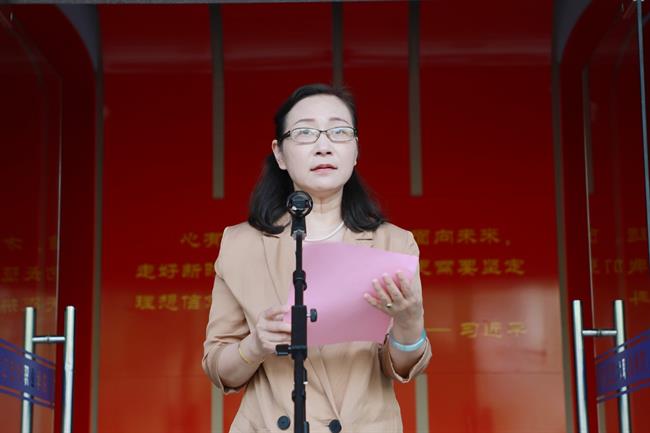 黄杭娟宣读学校“百年奋斗·初心弥坚”献礼建党百年设计作品大赛获奖名单。学校领导班子成员为获奖师生颁奖。