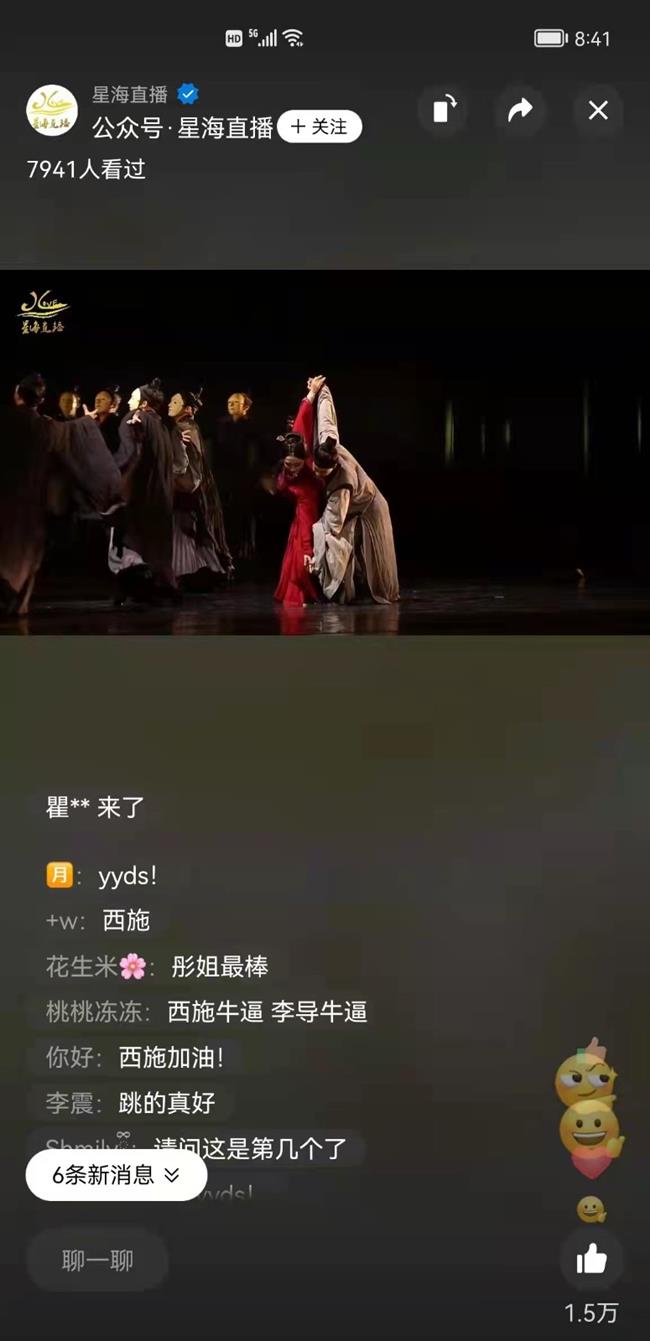 10月26日、27日,浙艺原创群舞《西施别越》在广东省友谊剧院参加第十三届全国舞蹈展演,并向全国观众进行了直播,点赞数过万,弹幕好评不断滚动,获得在场和线上观众的一致好评。