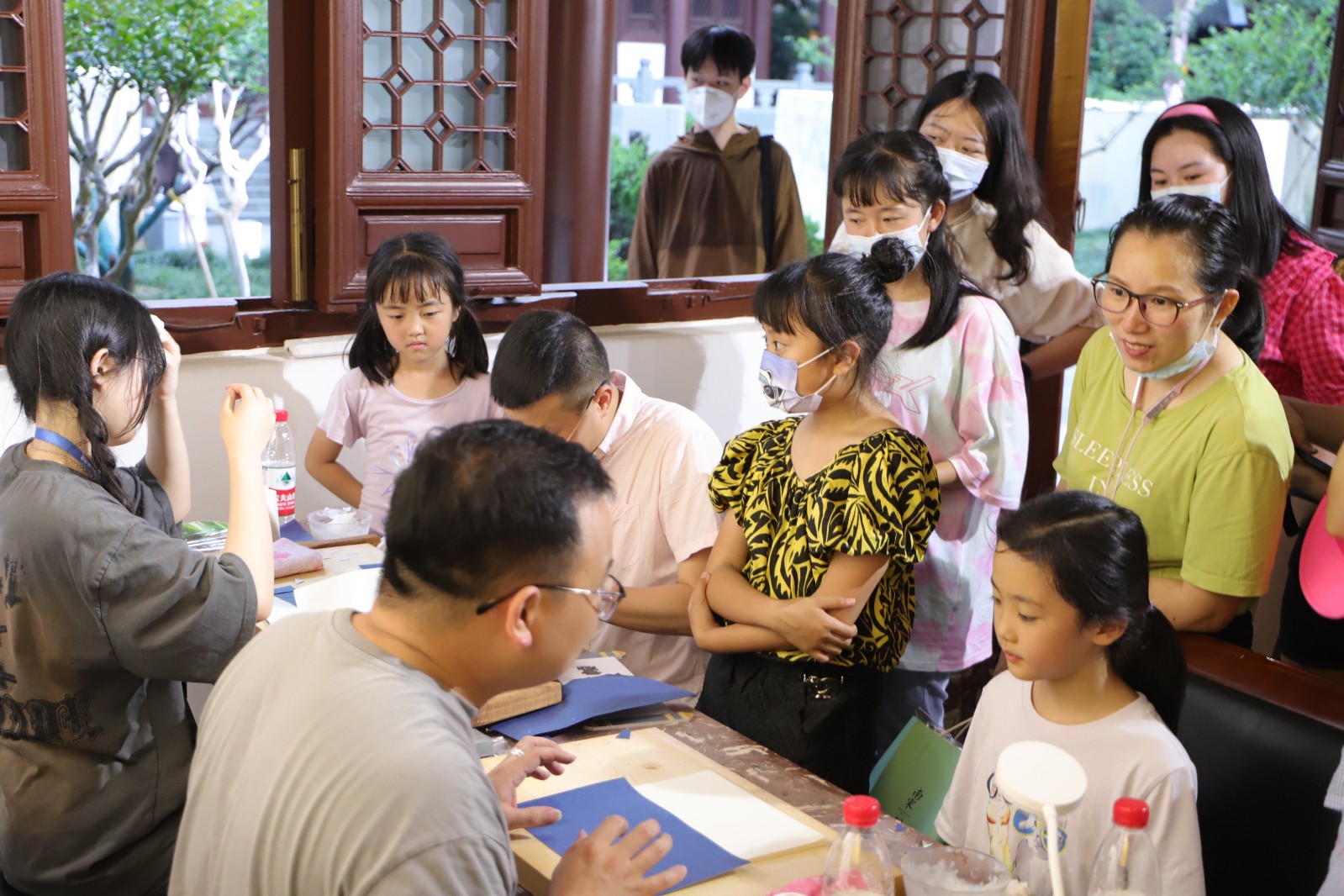 ▲浙艺师生走进社区带领居民体验创意扎染等非遗技艺