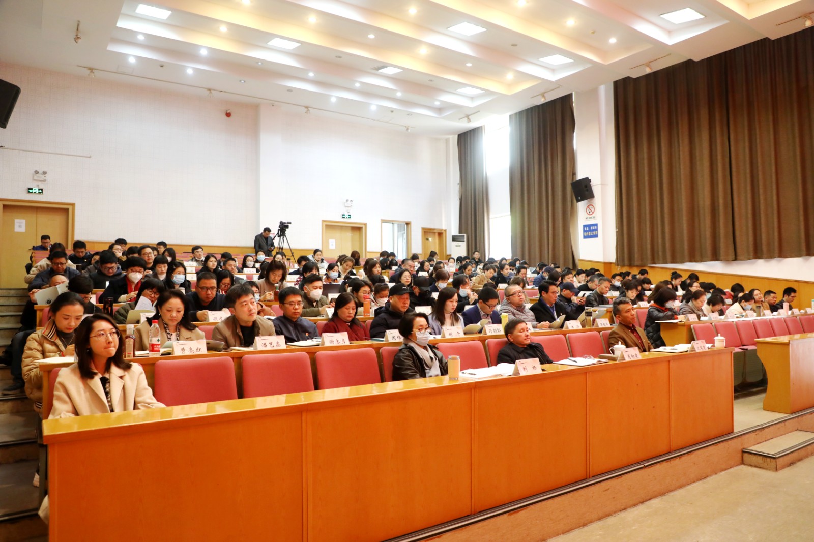 校党委书记薛亮出席会议并讲话,党委副书记、院长黄杭娟主持会议,党委副书记夏开堂作师德师风警示教育,校党委委员、纪委书记徐芳作工作报告。