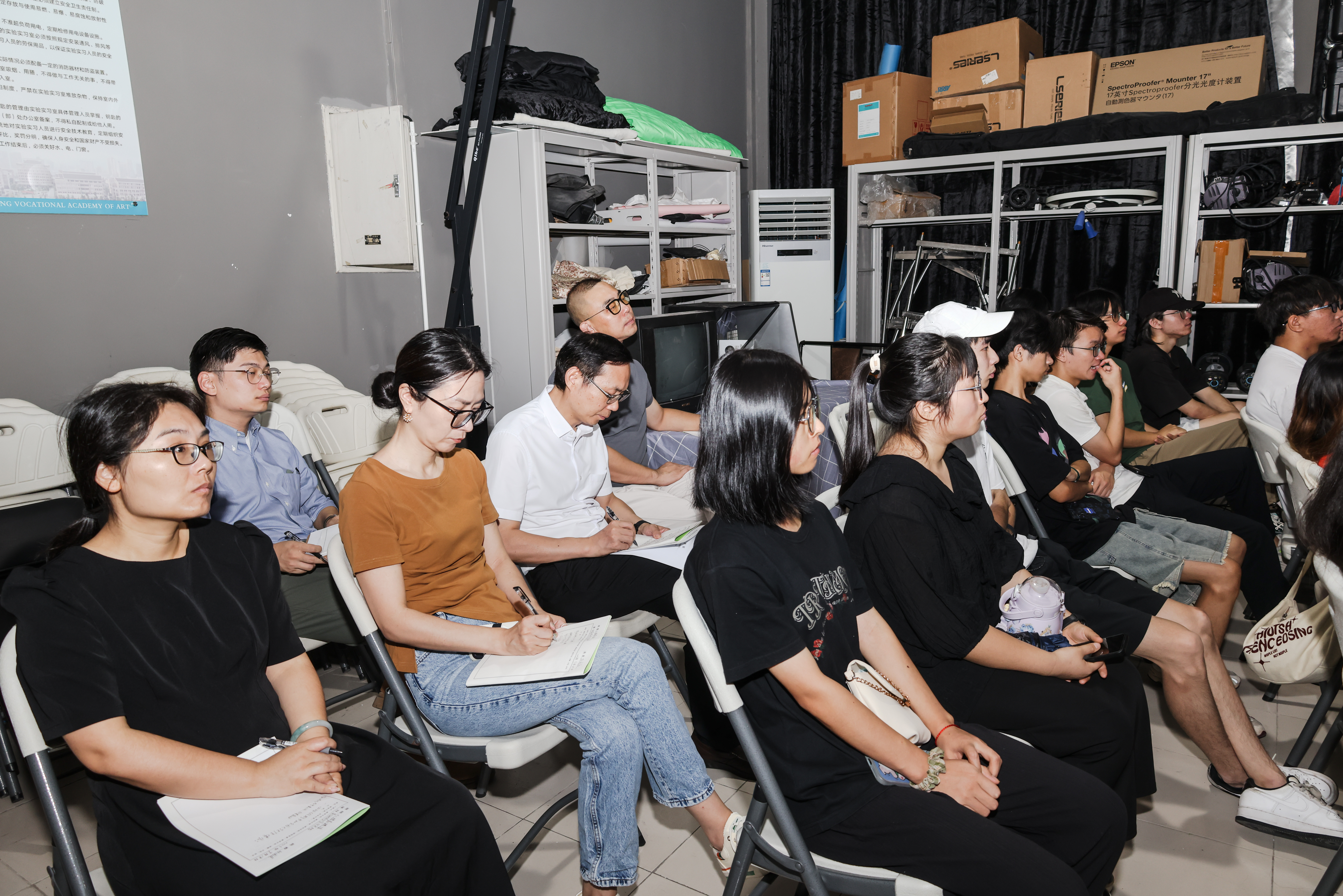 走进戏剧影视学院的课堂,教授史昕用直观的语言、生动的讲解为学生上表演课,声情并茂的授课让学生领悟表演的艺术。青年教师孙国虎、副教授王芳分别为2021级摄影摄像班和2022级音像1班学生讲授《影视创作与实践》和《音响技术》。两位老师用朴素的语言,亲切的表达,详细阐述影视创作的核心理念、创作思路和基本音响系统的架构及使用。学生听课认真,课堂纪律良好。