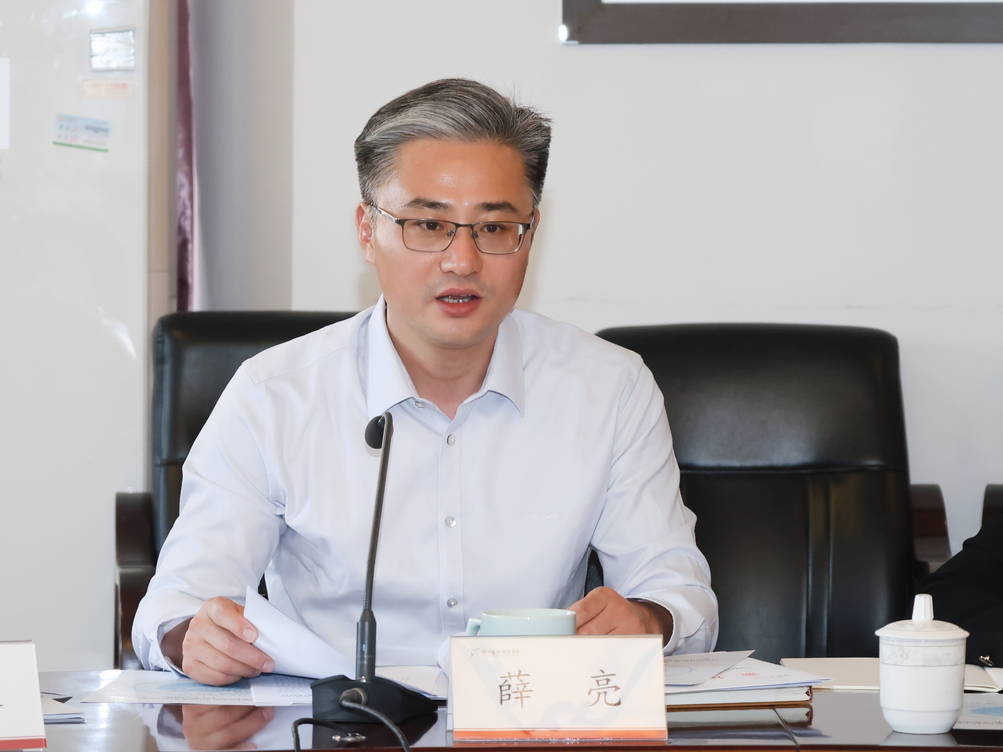 薛亮领学习近平总书记考察浙江重要讲话和省委常委会会议精神,并作了发言。会议指出,2023年是全面贯彻党的二十大精神开局之年、主题教育开展之年和“八八战略”实施 20 周年,在杭州亚运会盛大开幕的瞩目时刻,习近平总书记亲临浙江考察指导并出席杭州亚运会开幕式,是对浙江大地念兹在兹的倾情牵挂,是对浙江工作一以贯之的高度重视,是对浙江人民情深似海的关心关怀,意义重大、影响深远。学校广大党员干部师生要立即行动起来,学习讲话精神,深学细悟实干,将学习宣传贯彻习近平总书记考察浙江重要讲话精神与做好学习贯彻习近平新时代中国特色社会主义思想主题教育后半篇文章结合起来、与贯彻落实高等教育强省暨高水平大学建设工作推进会精神结合起来、与学习贯彻习近平总书记近期宣传思想文化工作重要指示精神以及全国宣传思想文化工作会议精神结合起来,围绕护航亚残运会一如既往抓好校园安全稳定工作和谋划学校新一轮高质量发展规划。