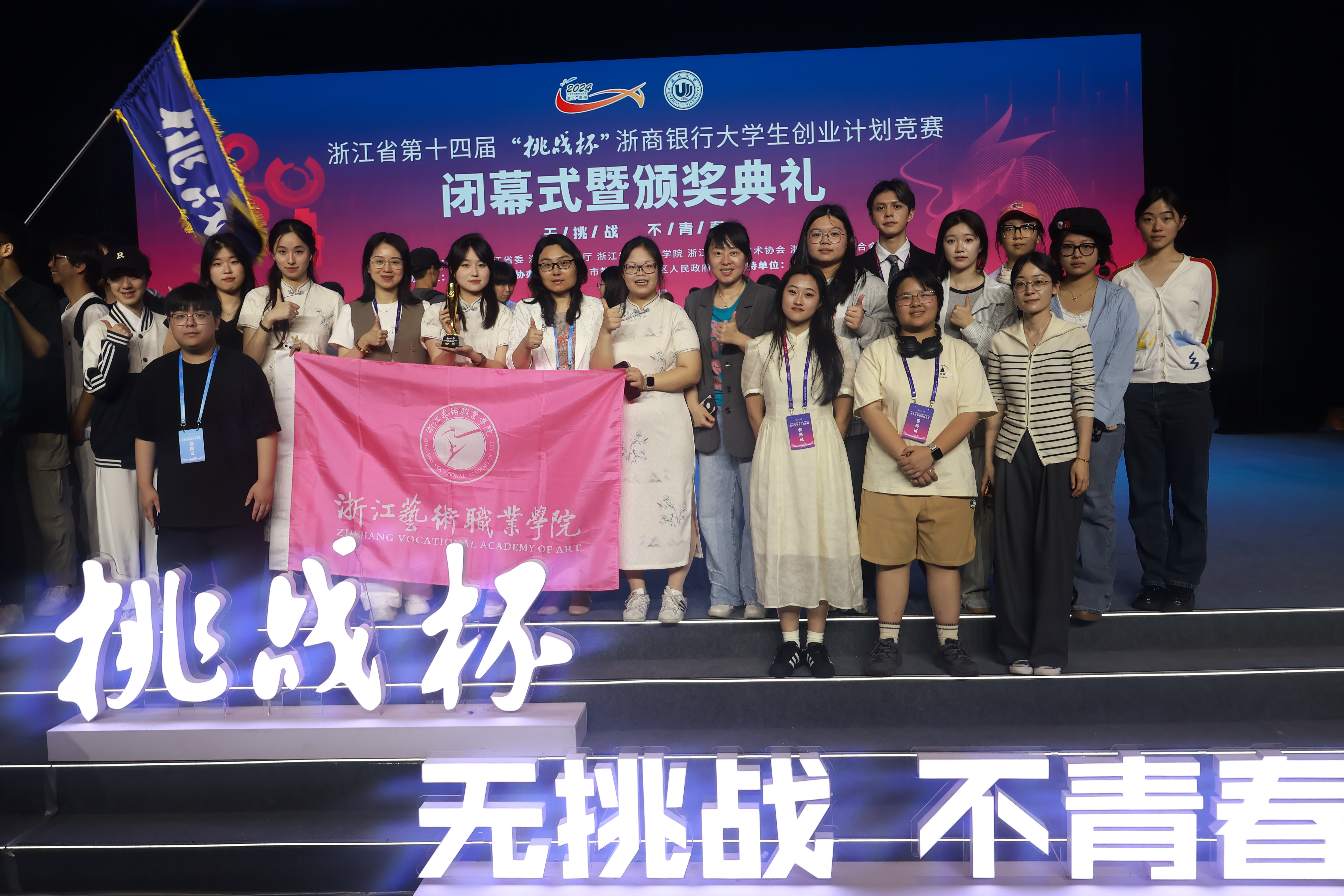 “听到获金奖消息的那一刻,我们既兴奋又惊喜,长期努力的成果得到认可。”“咙咚锵”团队成员胡乐瑶在闭幕式暨颁奖典礼上捧回金奖奖杯,“获得金奖对我来说是激励和鼓舞,也让我更加珍惜每一次机会和挑战”。“总算不负众望。”《“咙咚锵”——传统戏曲全媒体转型赋能者》项目负责人杨光说,“看到浙艺的校旗在‘挑战杯’颁奖仪式的舞台上第一次飘扬,我们非常激动。在3个月的备赛过程我们经历了无数的挑战和磨砺,将戏曲这一传统艺术与现代科技相结合,对我们来说是一个全新的尝试。非常开心这段时间在老师们的指导下,我们能取得好结果。”