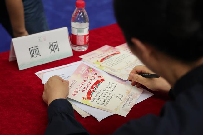 活动最后,行业嘉宾、校团领导共同为京剧班的同学们送上书记校长有约纪念卡。
