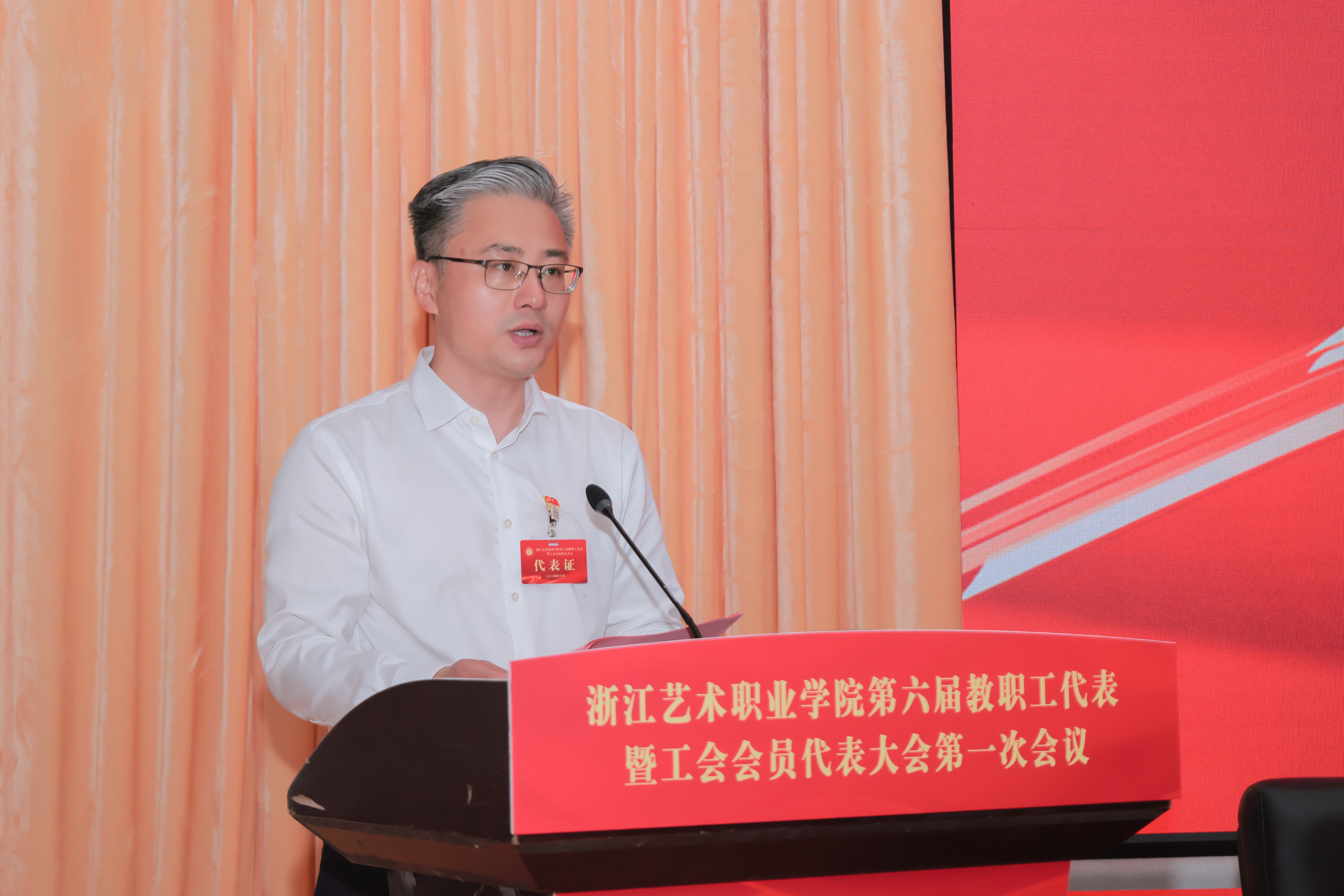 6月22日,浙江艺术职业学院第六届教职工代表暨工会会员代表大会(以下简称“双代会”)在图信中心报告厅举行。校党委领导班子成员,校“双代会”正式代表、特邀代表、列席代表等170余人参加会议。