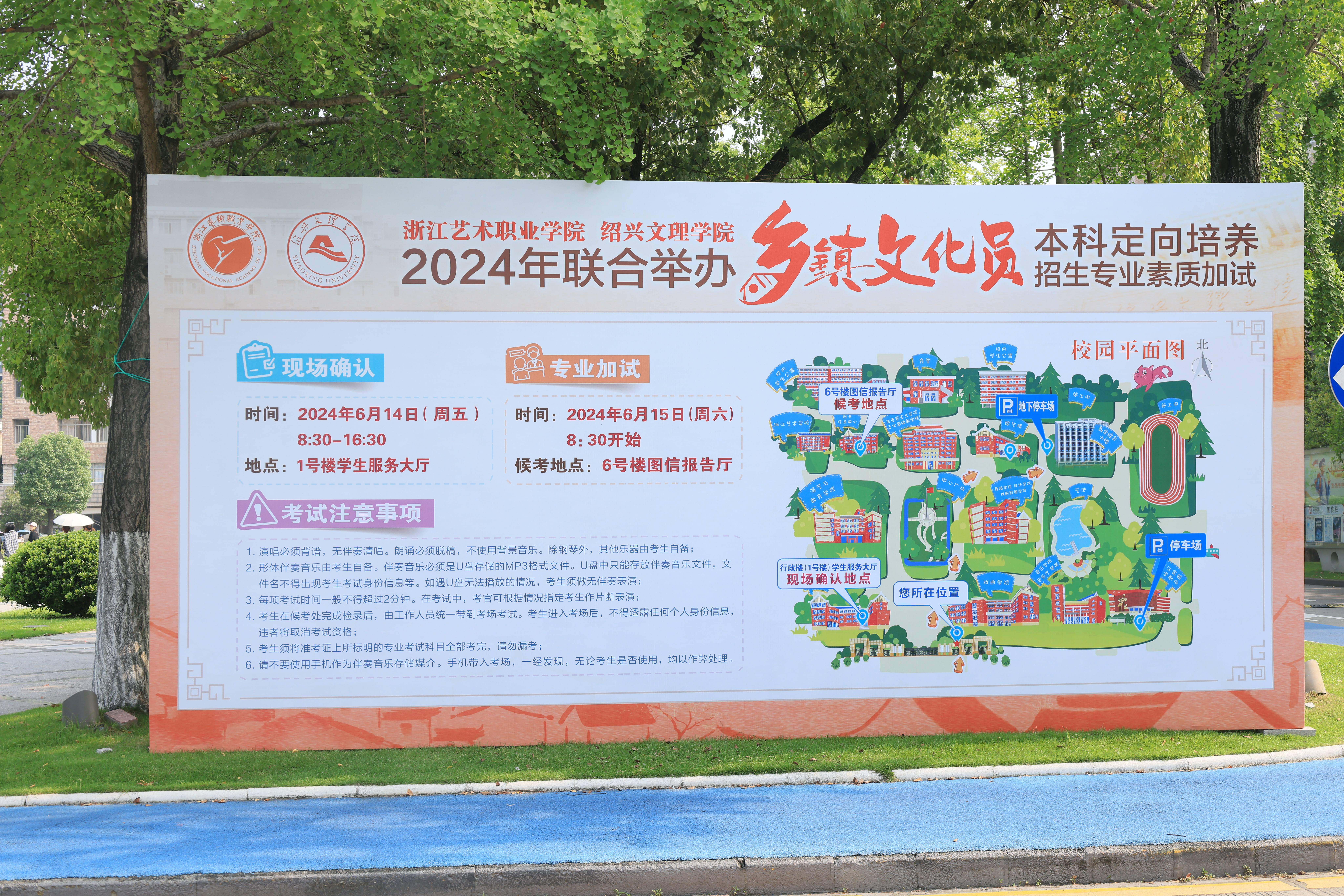 6月15日,全省各地共268名考生赴浙江艺术职业学院参加2024年乡镇文化员定向培养招生专业素质加试。本次乡镇文化员定向培养计划招生26名,与其他普通专业不同的是,被录取学生将与各县(市、区)文化和广电旅游体育局、人力社保部门签订定向培养就业协议,在接受4年专业培养后,回到委托培养地的乡镇文化单位工作,并由用人单位与定向培养生签订事业单位聘用合同。与往年不同的是,2024年乡镇文化员本科定向培养工作采用“2+2”模式,由浙江艺术职业学院(2年)和绍兴文理学院(2年)联合承办。