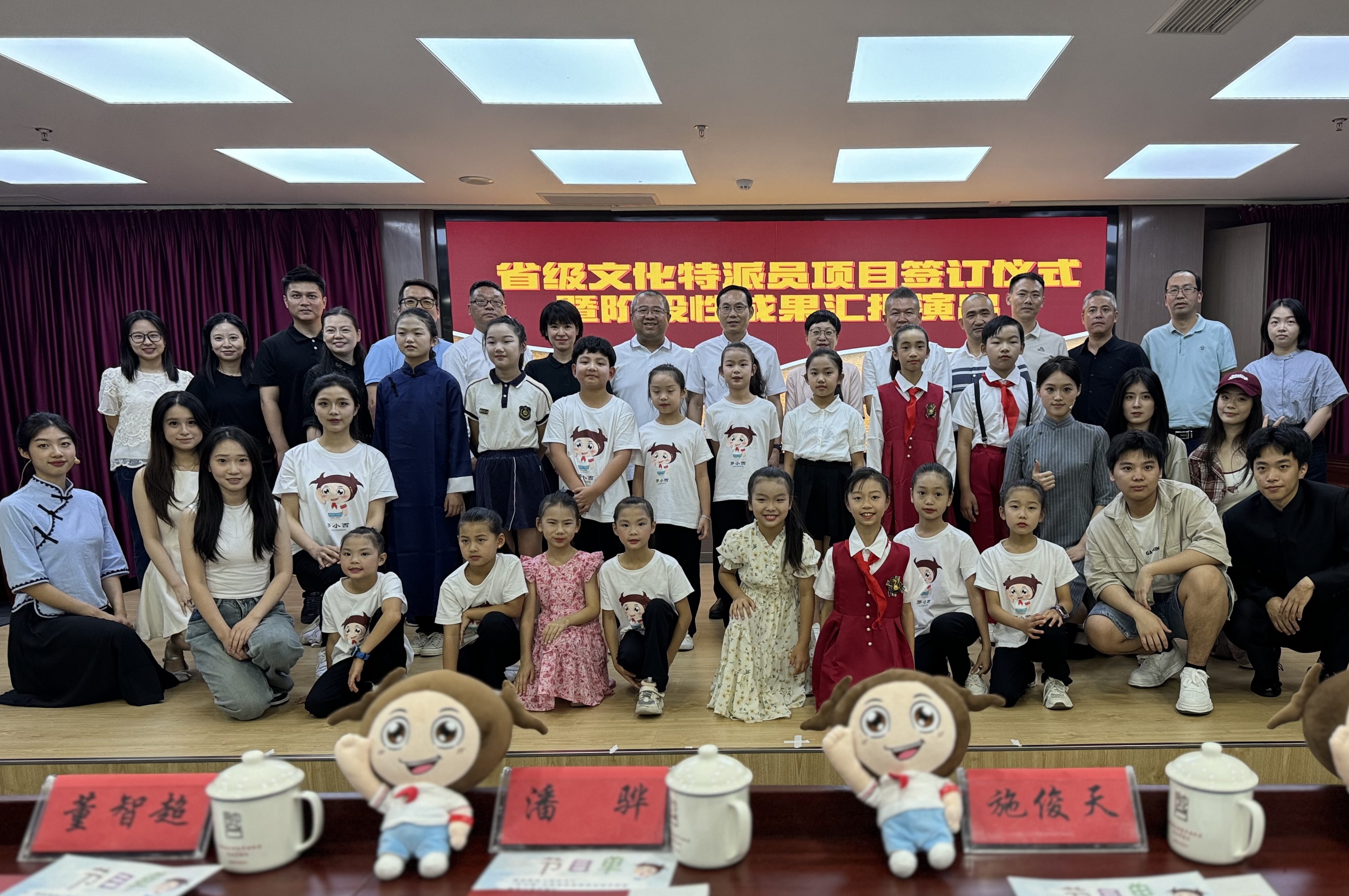 签订仪式后,罗西社区儿童剧团暑期培训班进行了汇报演出。相声《反正话》风趣幽默,展现了小演员说学逗唱的基本功。朗诵《大写的中国》情绪饱满,感情真挚,表达了小演员们对祖国的热爱。原创音乐快板《垃圾分类跟我学》将快板和音乐巧妙结合,节奏欢快、内容丰富,让大家对垃圾分类有了新的认识。原创情景剧《善行状元》更是对状元街道本土文化进行了展示,状元阁、状元亭、状元桥里发生的慈善故事让大家感到温暖。同时,浙江艺术职业学院演教学院23级表演艺术专业(3+2)班的同学们带来了浙江省十二届大学生经典诵读一等奖作品《秋瑾》,赢得了阵阵掌声。