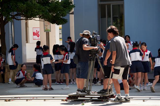▲戏剧影视学院院长那刚来到影片《我爱我的老师》之《吾师启矿》拍摄现场探班