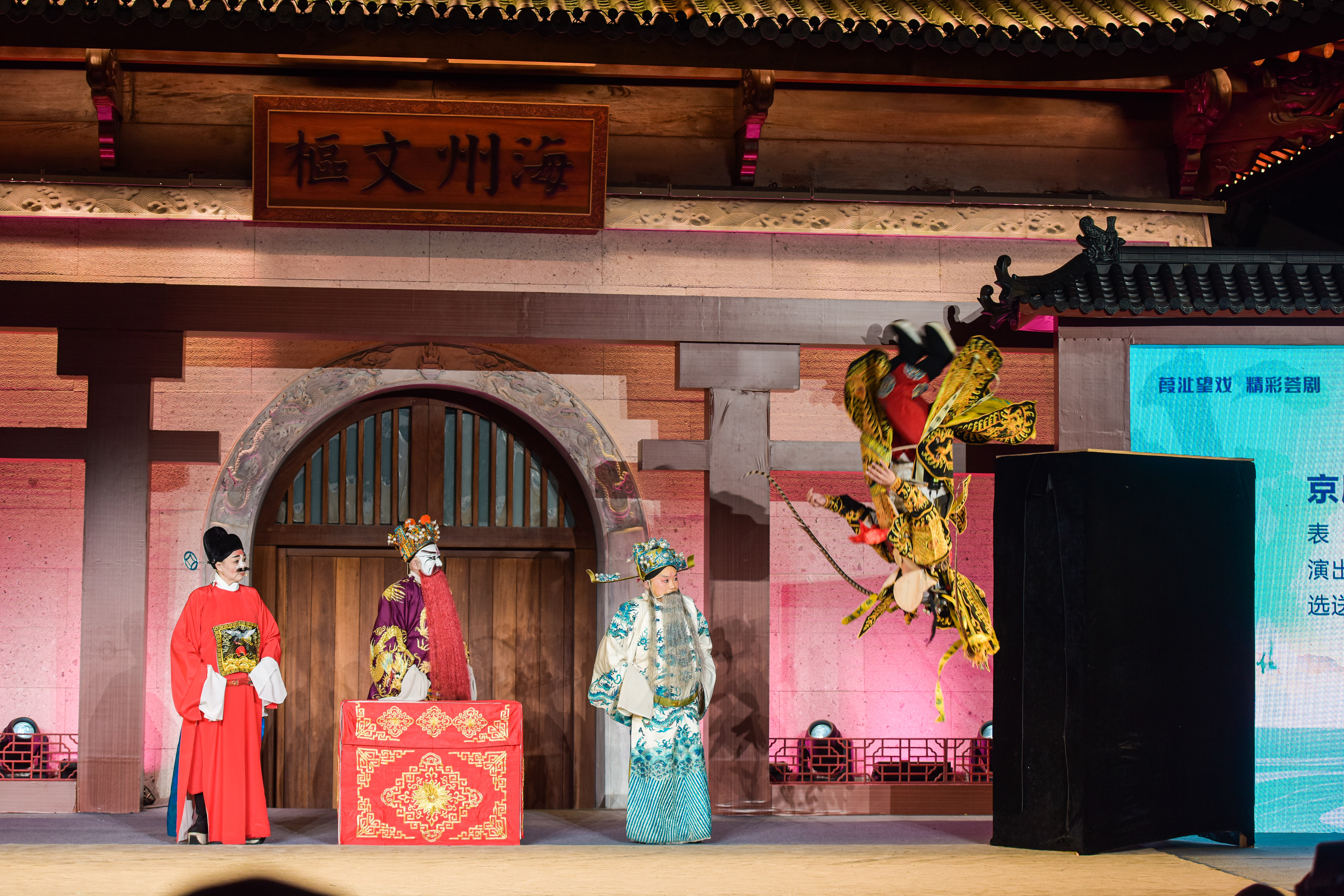 会演于22日至24日每晚演出一场,每场8个剧目。演出现场,古韵悠悠的葭沚老街上戏曲声声交织,市民们和游客们在夜幕降临前就开始等候观看,充满了期待和兴奋。永嘉县五朵金花乱弹剧团献上了第一场的第一个节目《金宝盆·上路》,随后浙江泓影常山越剧团的《义惩顽子》,三门县小百花越剧团的《祥林嫂·问天》、永嘉县小红芳京剧团的《霸王别姬》选段、缙云县李燕美婺剧团的《清风亭》选段、杭州千岛湖睦剧团《阴阳河·担水》、永嘉县红楼越剧团的《蝴蝶梦·劈棺》、宁波市北仑区大碶鸣凤越剧团的越剧《梁祝·楼台会》等接连亮相,演出有精湛的武戏,也有感情细腻的文戏,精彩表演赢得现场老戏迷热烈鼓掌和喝彩,不少老戏迷们还不时跟着台上演员哼唱几句。