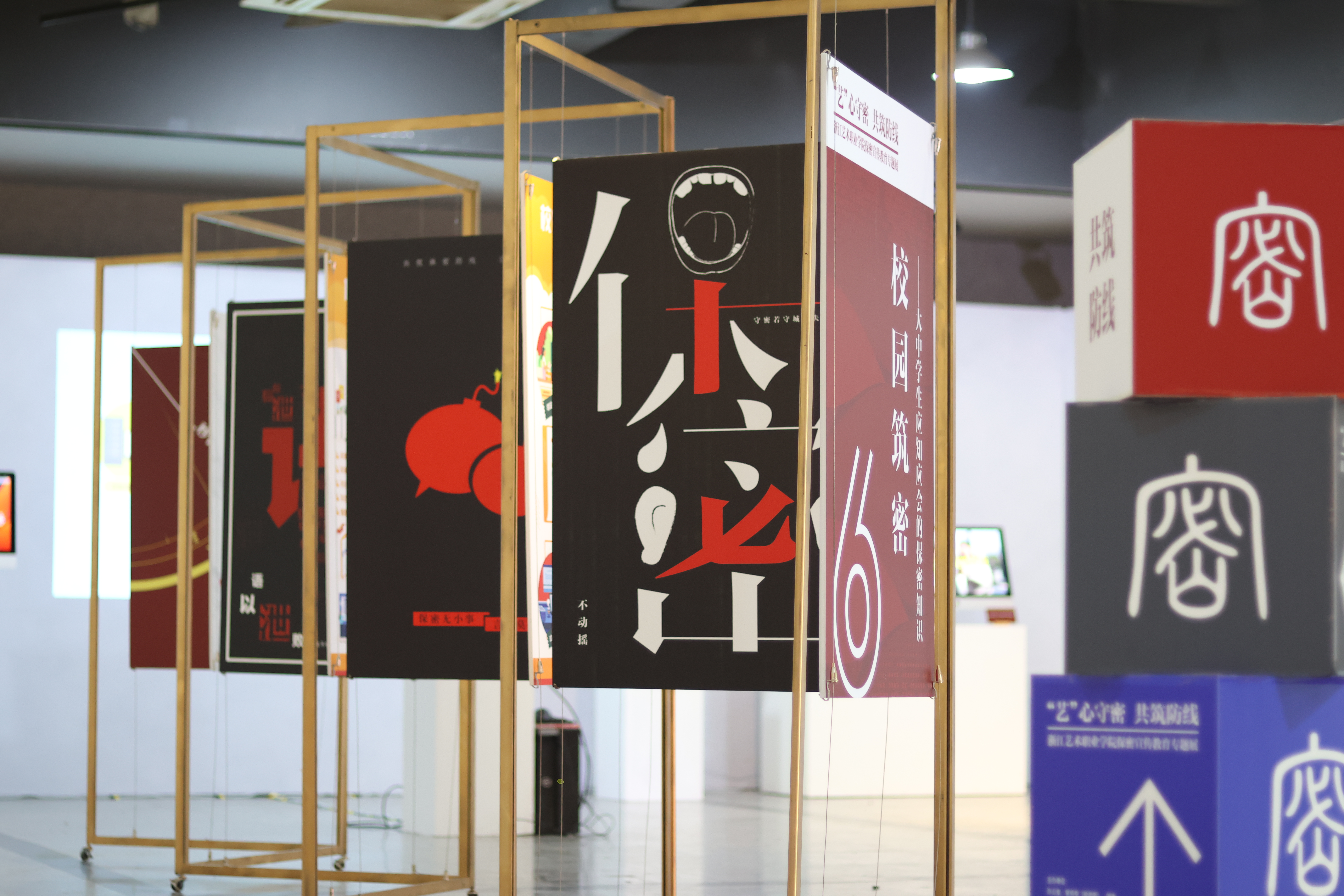 “‘艺’心守密 共筑防线”保密宣传教育专题展是学校在保密宣传教育领域的创新尝试,展览以艺术之美诠释保密之重,将保密宣传教育融入理论宣讲、专业教学和赛事展览,拓宽了思政育人空间,提升了师生安全保密意识。