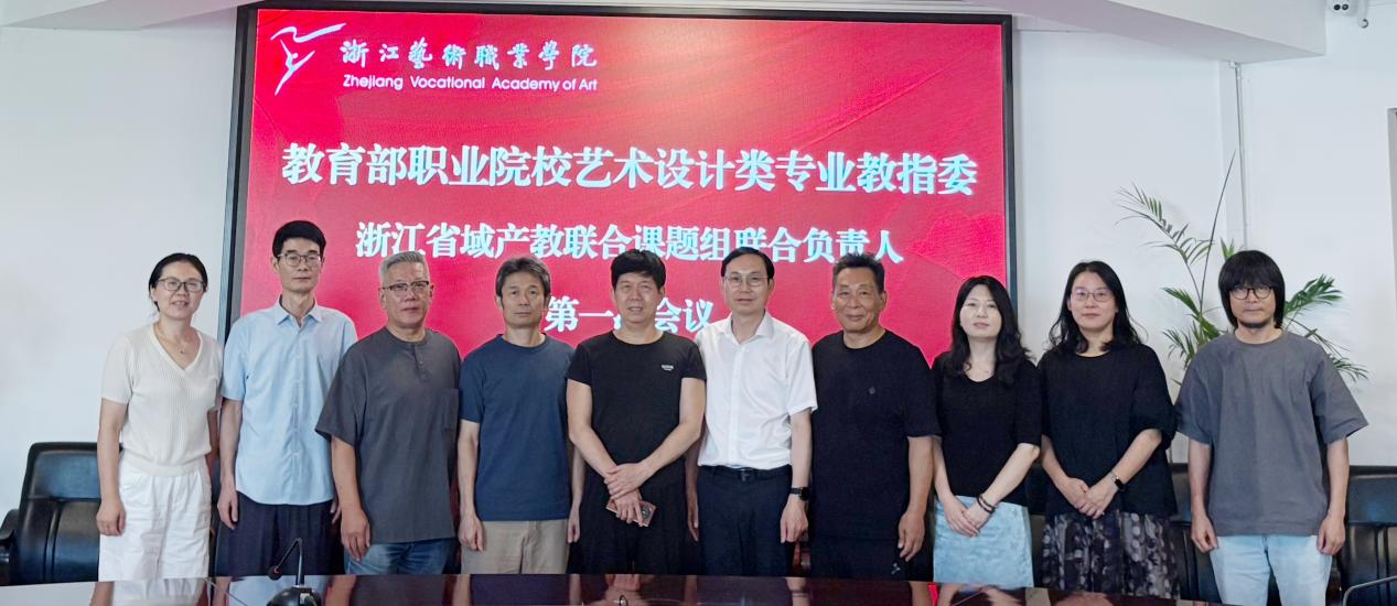 为深化产教融合,推动艺术设计职业教育高质量发展,9月7日,“教育部职业院校艺术设计类专业教学指导委员会浙江省域产教联合课题组联合负责人第一次会议”在浙江艺术职业学院召开。教育部职业院校艺术设计类专业教学指导委员会秘书长张来源、副主任罗润来,浙江艺术职业学院校长施俊天,金华职业技术大学、浙江机电职业技术大学、杭州职业技术大学、浙江商业职业技术学院、浙江纺织服装职业技术学院、温州职业技术学院等省内院校艺术设计领域负责人,以及我校设计学院、手工艺学院负责人共同出席此次会议。