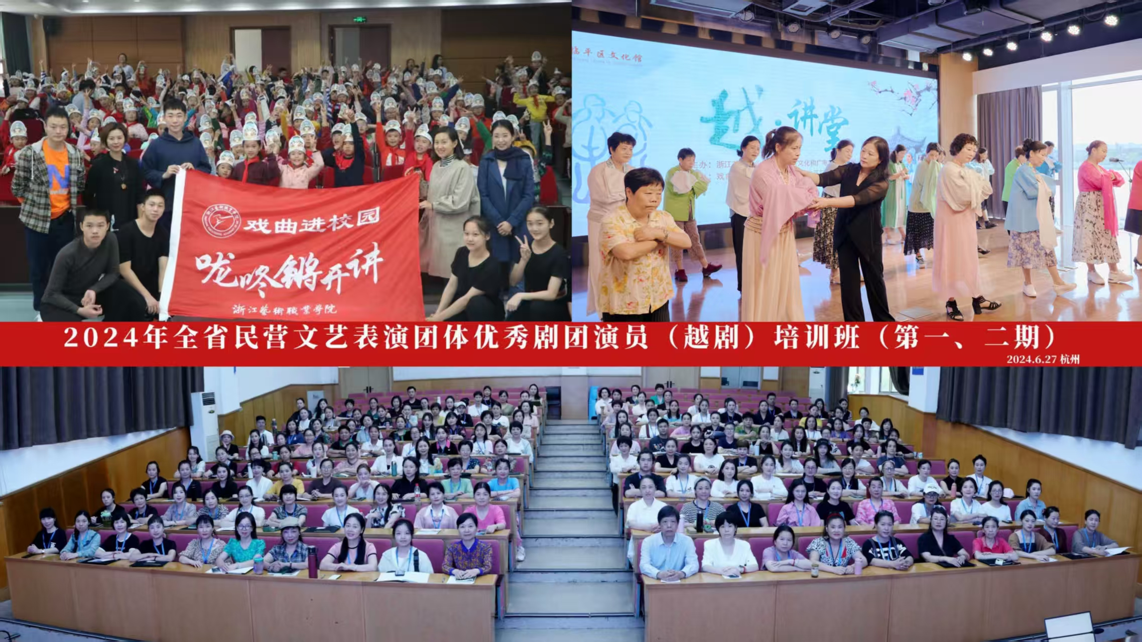 推出“中小学戏曲师资培训”“戏曲进校园”“送教下乡”“文化礼堂送演”等活动千余场,连续14年承担浙江省民营剧团“百团千人培训项目”和优秀剧目展演活动,《推动民营职业剧团脱困的建议》研究报告获省委领导批示及社会好评。建有省、市两级优秀传统文化传习产教融合实践中心,4项戏曲基层院团类人才培训入选国家级培训项目。承办中韩日戏剧节、中国希腊文化和旅游年之“照鉴·中希戏剧对话”等国际文化交流活动,推动戏曲出海。