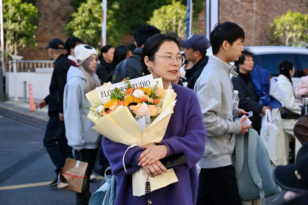 考点外,家长们的叮嘱和鼓励温暖了冬日的凉意。手捧鲜花的母亲,在考场外静静等候。“好好考,顺其自然,加油!” 简单的话语,寄托了她对孩子最美好的期盼。