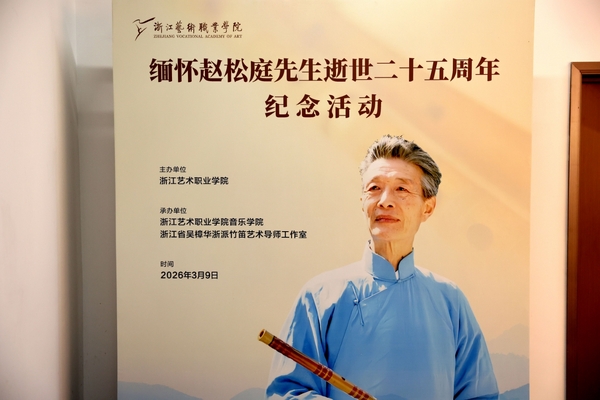 春风寄哀思,笛韵永流芳。3月9日,赵松庭先生逝世二十五周年纪念活动在浙江艺术职业学院赵松庭纪念馆举行,以追思会、纪念馆参观、论坛等形式,缅怀这位中国竹笛艺术泰斗的卓越功绩,探讨赵派笛乐艺术的当代传承与发展。赵松庭家属代表,赵松庭学生代表,笛界知名专家学者,上海音乐学院、浙江音乐学院、杭州师范学院及我校竹笛专业师生代表齐聚一堂,共寄追思,共话传承。