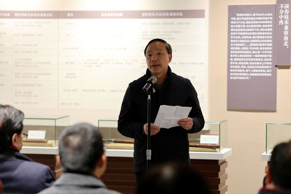 先生家属代表、外孙蔡拯教授讲述了先生淡泊名利、深耕笛艺的一生,感恩学校为传承松庭精神所做的努力,并表示将以先生为榜样,恪守“学艺先修德,练技先养精”的准则,接续传承浙派笛乐风骨。